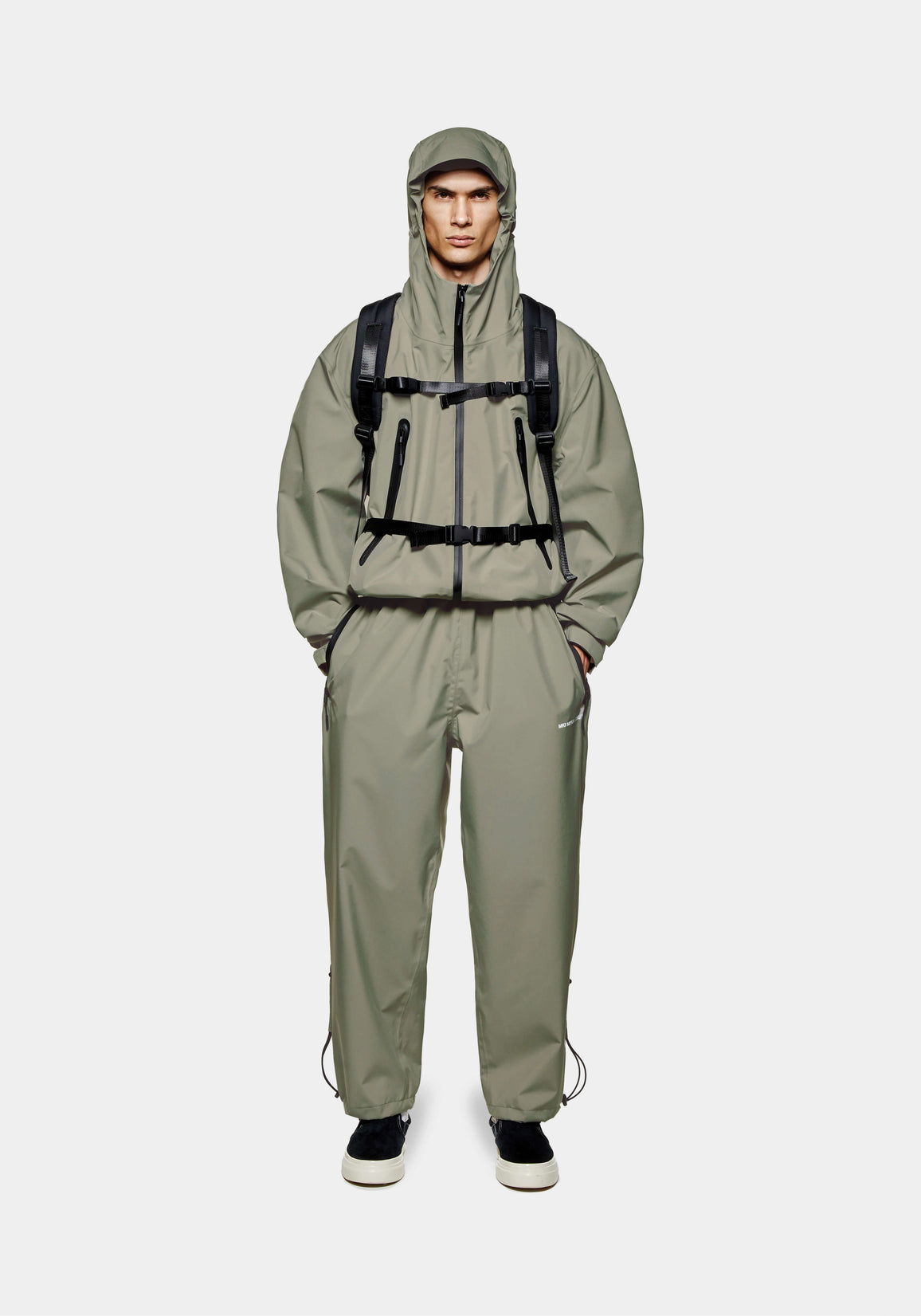 THE MODEL IS 6FT AND WEARS A SIZE LARGE. THE MODEL IS ALSO WEARING MKI V2 SHELL TRACK PANTS IN OLIVE.