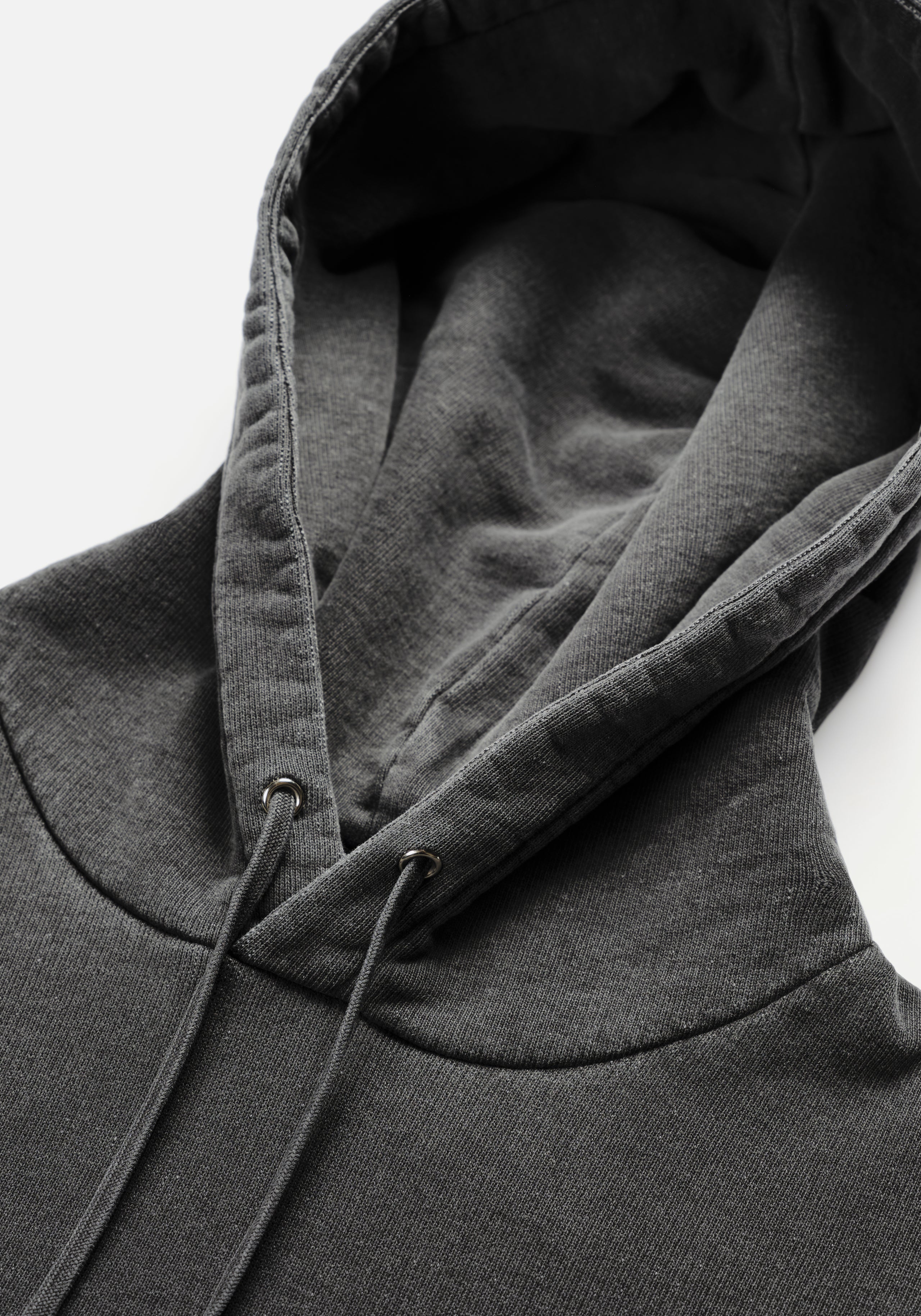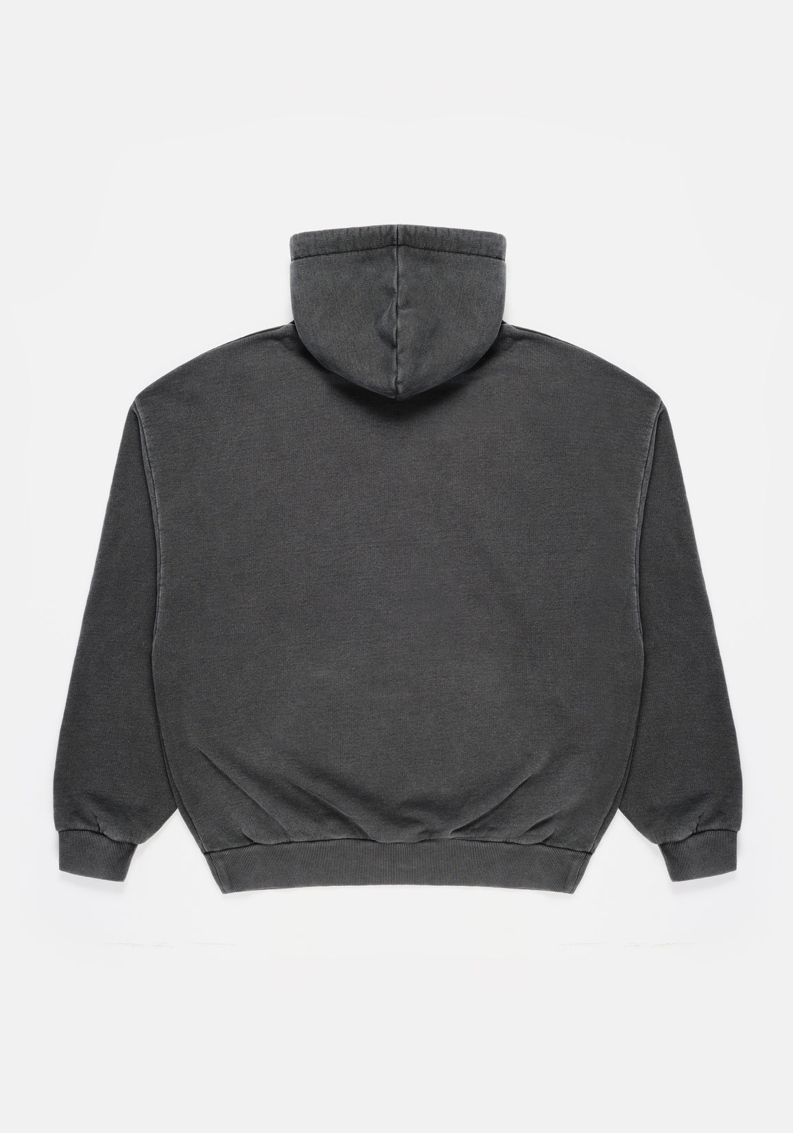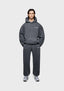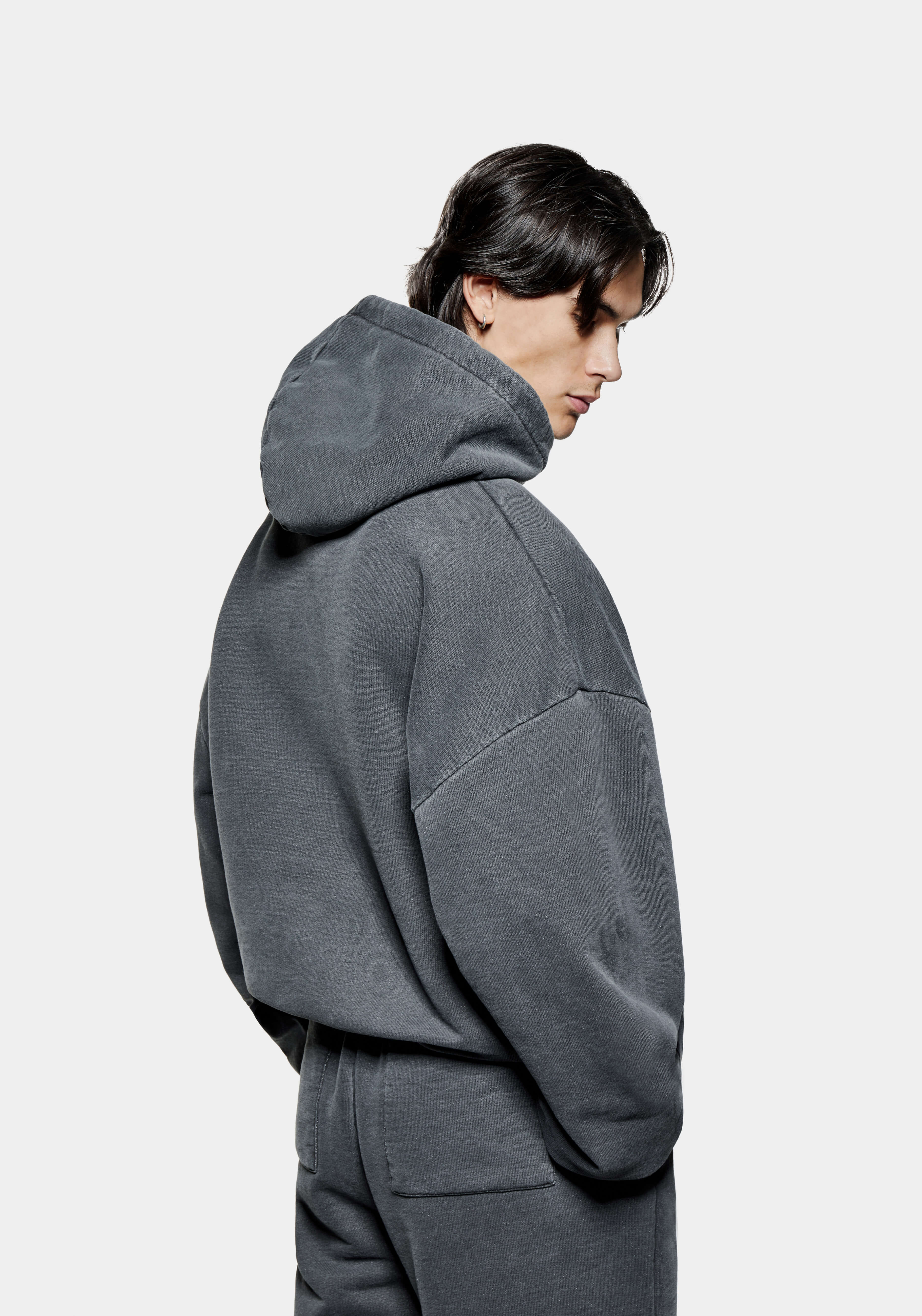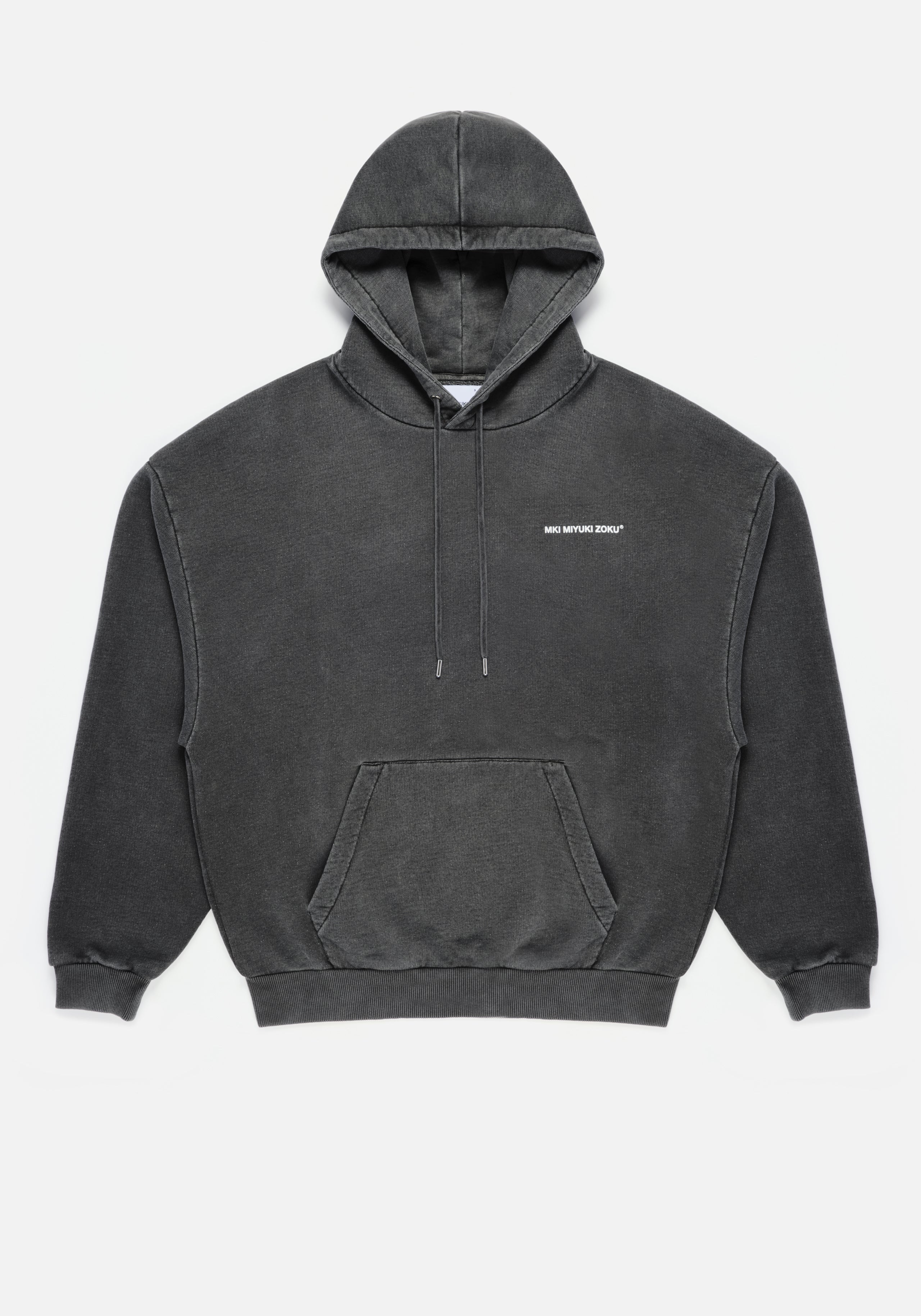 MKI UNIFORM HOODY IN PIGMENT BLACK. THE MKI UNIFORM HOODY IS AVAILABLE IN A PIGMENT BLACK COLOURWAY – ACHIEVED THROUGH A SPECIAL WASHING PROCESS THAT DELIVERS AN INTENTIONALLY FADED APPEARANCE. AVAILABLE IN MKI’S SIGNATURE, OVERSIZED BOX FIT AND CRAFTED FROM HEAVYWEIGHT 500GSM COTTON JERSEY, THE HOODY IS EQUIPPED WITH A FRONT POUCH POCKET, DOUBLE LAYER HOOD AND METAL-TIPPED DRAWSTRINGS. SCREEN-PRINTED UNIFORM BRANDING AT THE LEFT CHEST COMPLETES THE DESIGN.