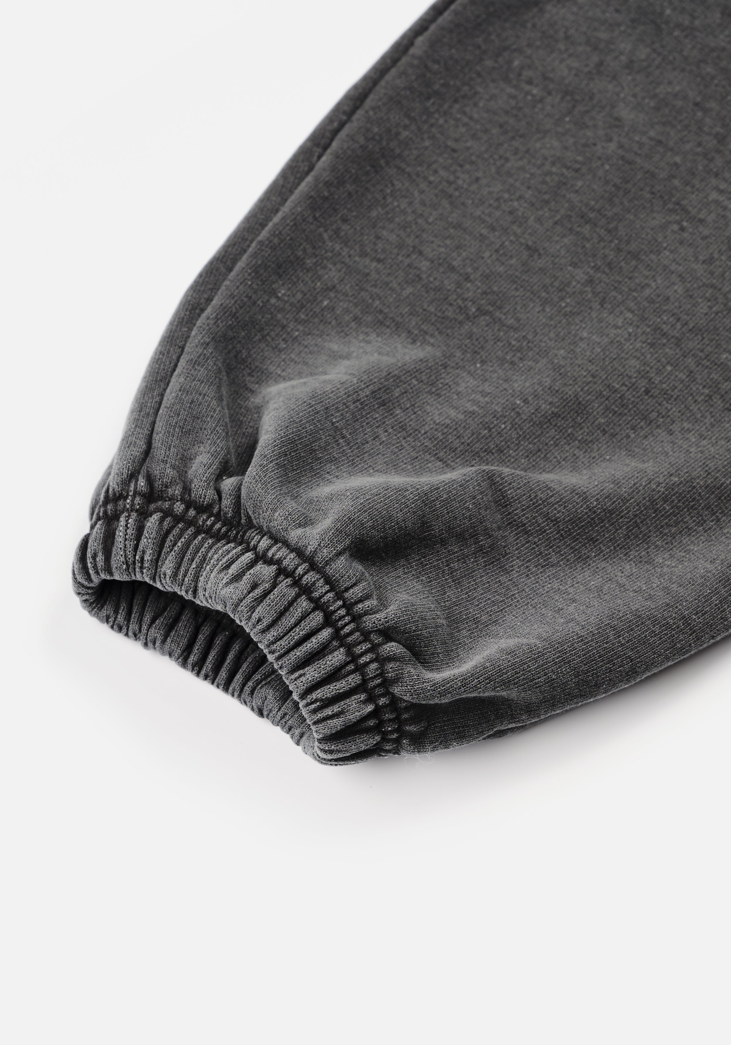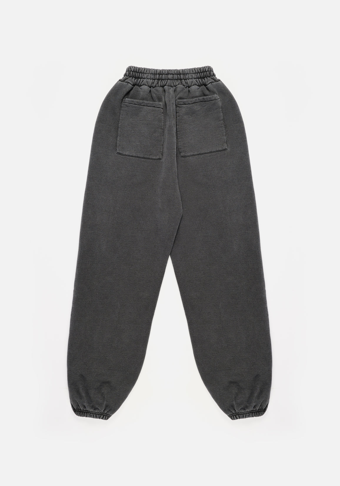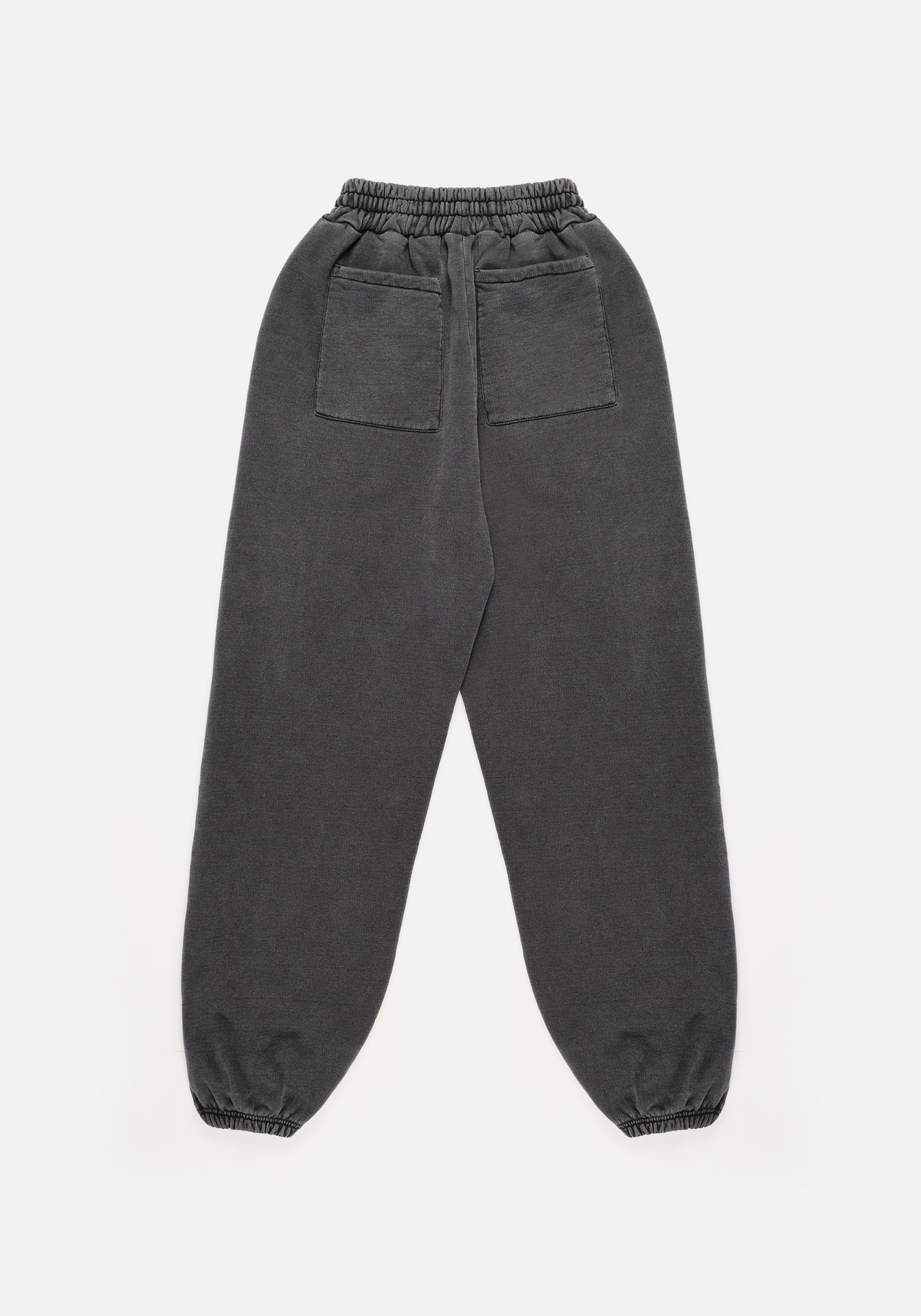 MKI UNIFORM JOGGERS IN PIGMENT BLACK. THE PIGMENT BLACK JOGGERS ARE PART OF THE PIGMENT WASH COLLECTION. THIS GARMENT IS IDENTIFIED BY THE VINTAGE COLOUR AND FADED APPEARANCE, ACCENTUATING THE HIGHS AND LOWS ACROSS SEAMS FOR A TEXTURED LOOK. TO ACHIEVE THE IDEAL WASHED APPEARANCE, OUR PIGMENT WASH JERSEY ITEMS ARE CREATED WITH A LOOPBACK INTERIOR RATHER THAN BRUSHED COTTON ON THE SAME CUSTOM 500 GSM BASES, RESULTING IN A MORE TEXTURED INTERIOR FINISH.