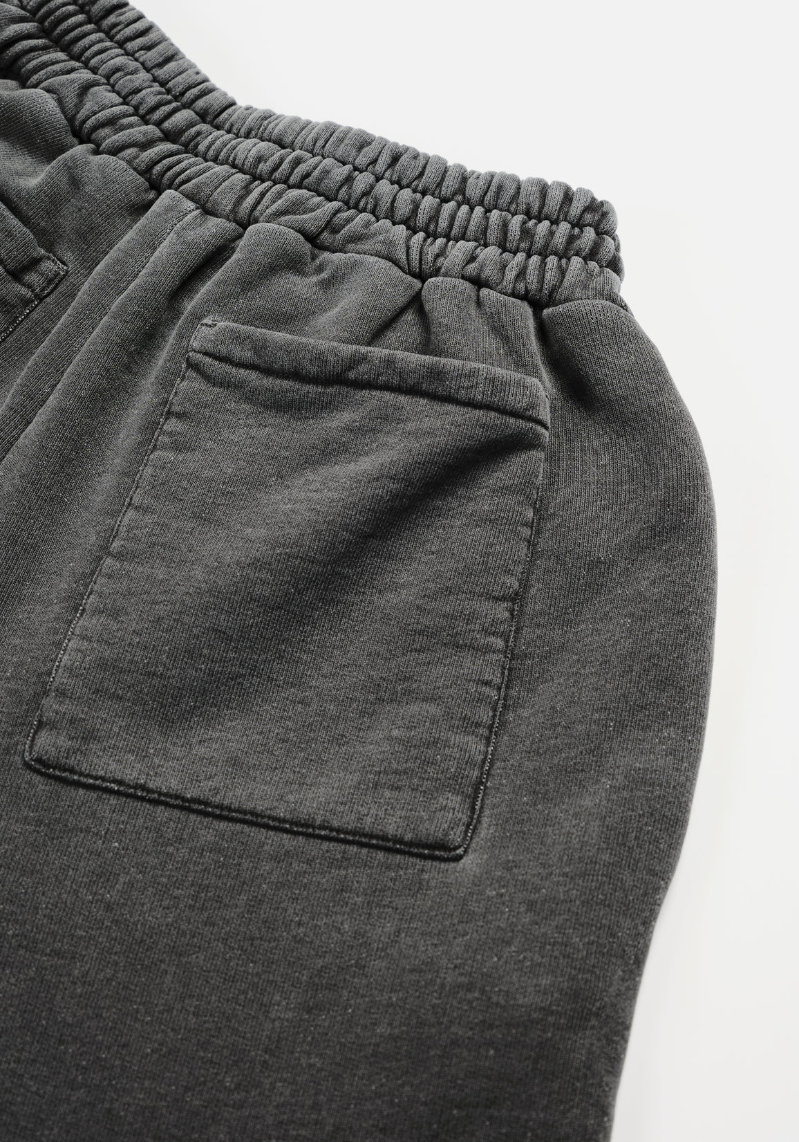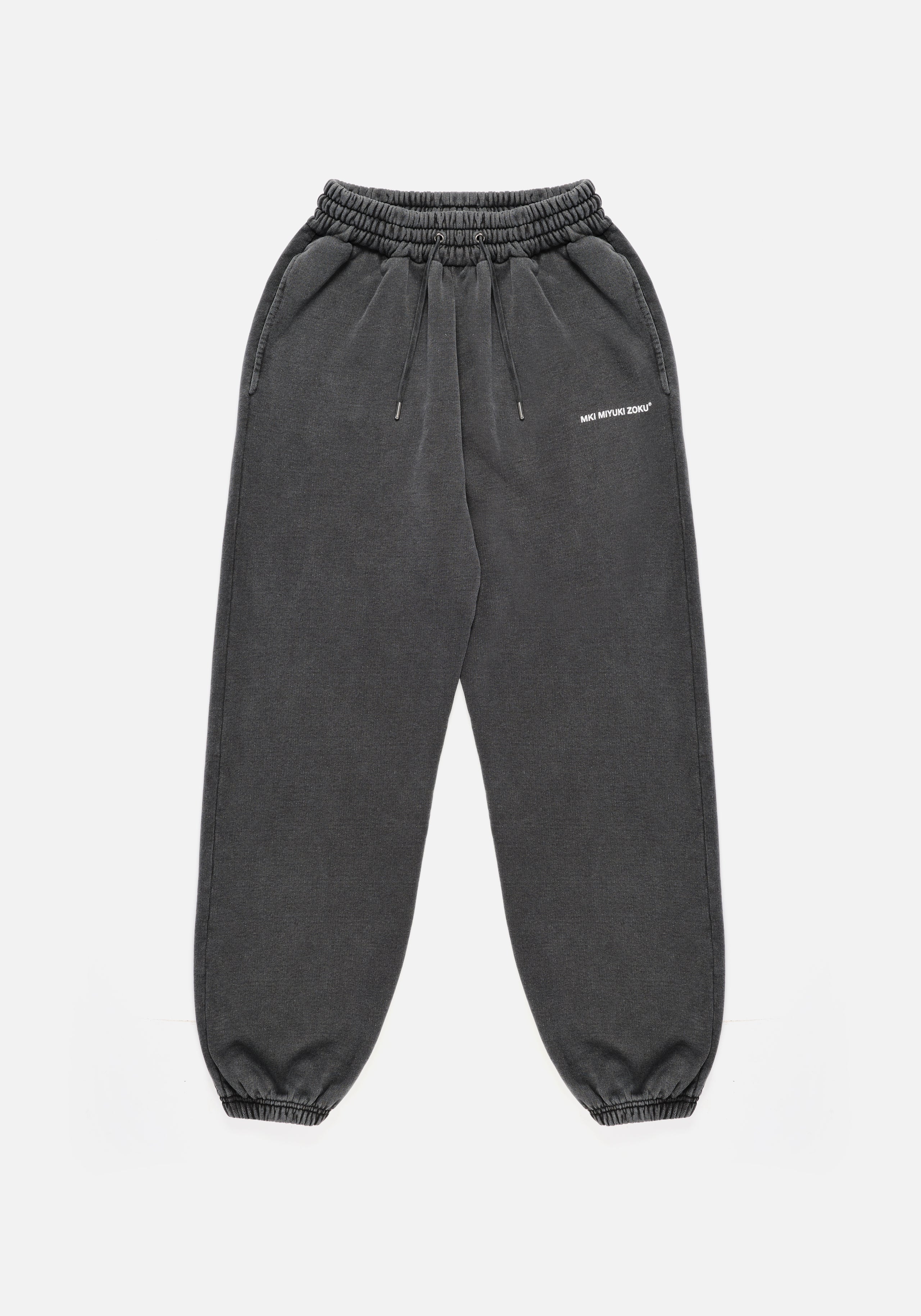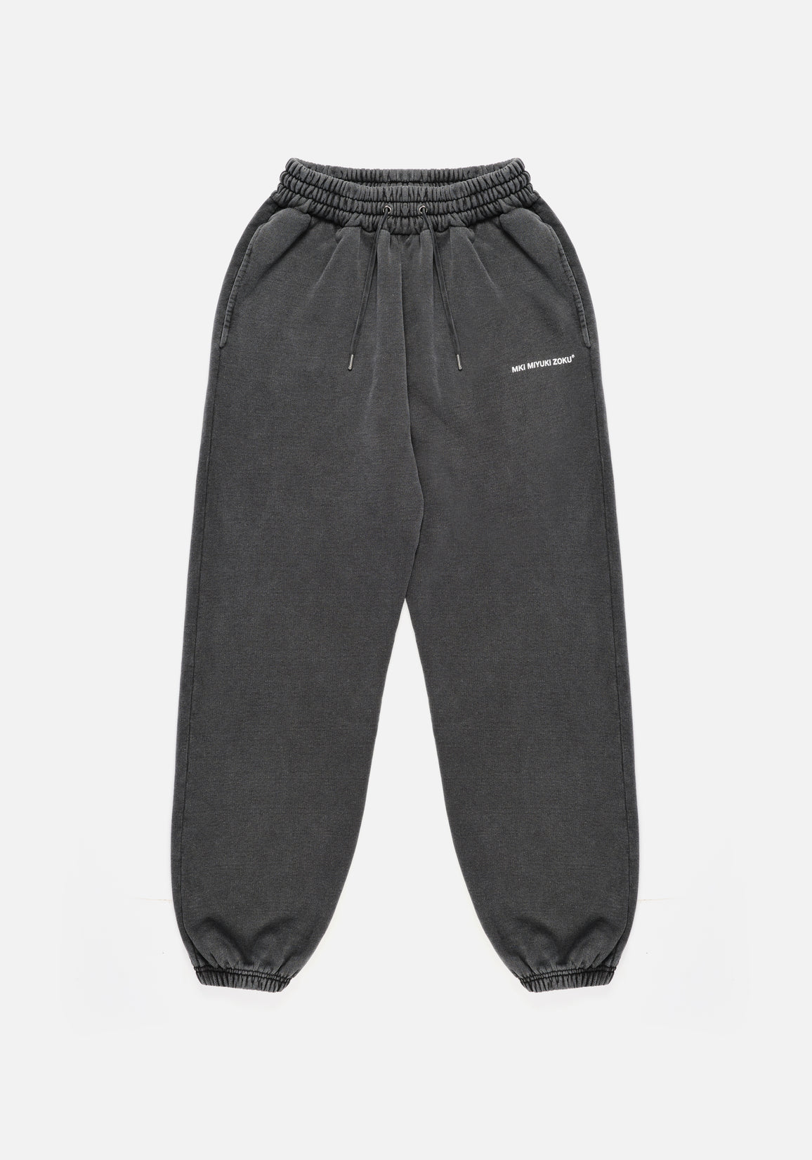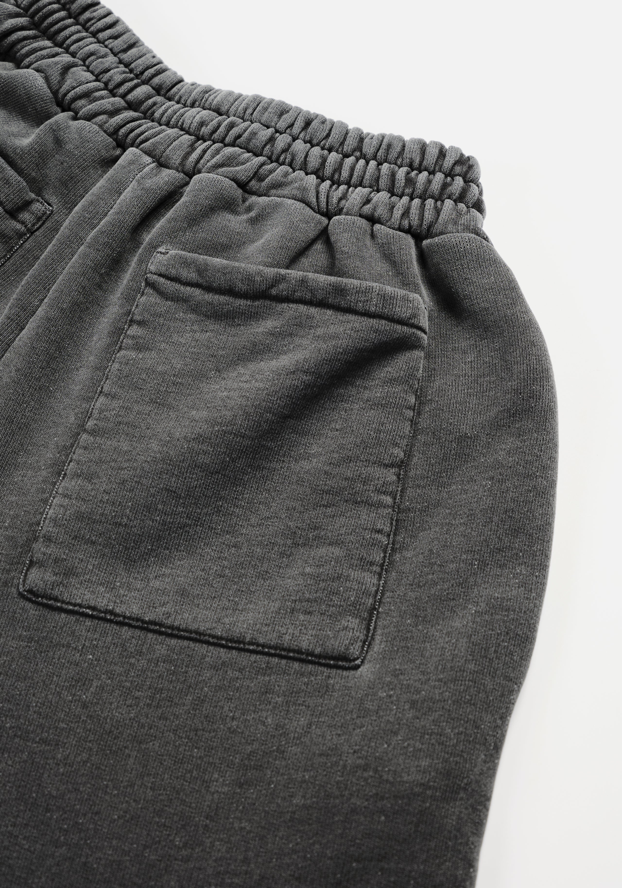 MKI UNIFORM JOGGERS IN PIGMENT BLACK. THE PIGMENT BLACK JOGGERS ARE PART OF THE PIGMENT WASH COLLECTION. THIS GARMENT IS IDENTIFIED BY THE VINTAGE COLOUR AND FADED APPEARANCE, ACCENTUATING THE HIGHS AND LOWS ACROSS SEAMS FOR A TEXTURED LOOK. TO ACHIEVE THE IDEAL WASHED APPEARANCE, OUR PIGMENT WASH JERSEY ITEMS ARE CREATED WITH A LOOPBACK INTERIOR RATHER THAN BRUSHED COTTON ON THE SAME CUSTOM 500 GSM BASES, RESULTING IN A MORE TEXTURED INTERIOR FINISH.