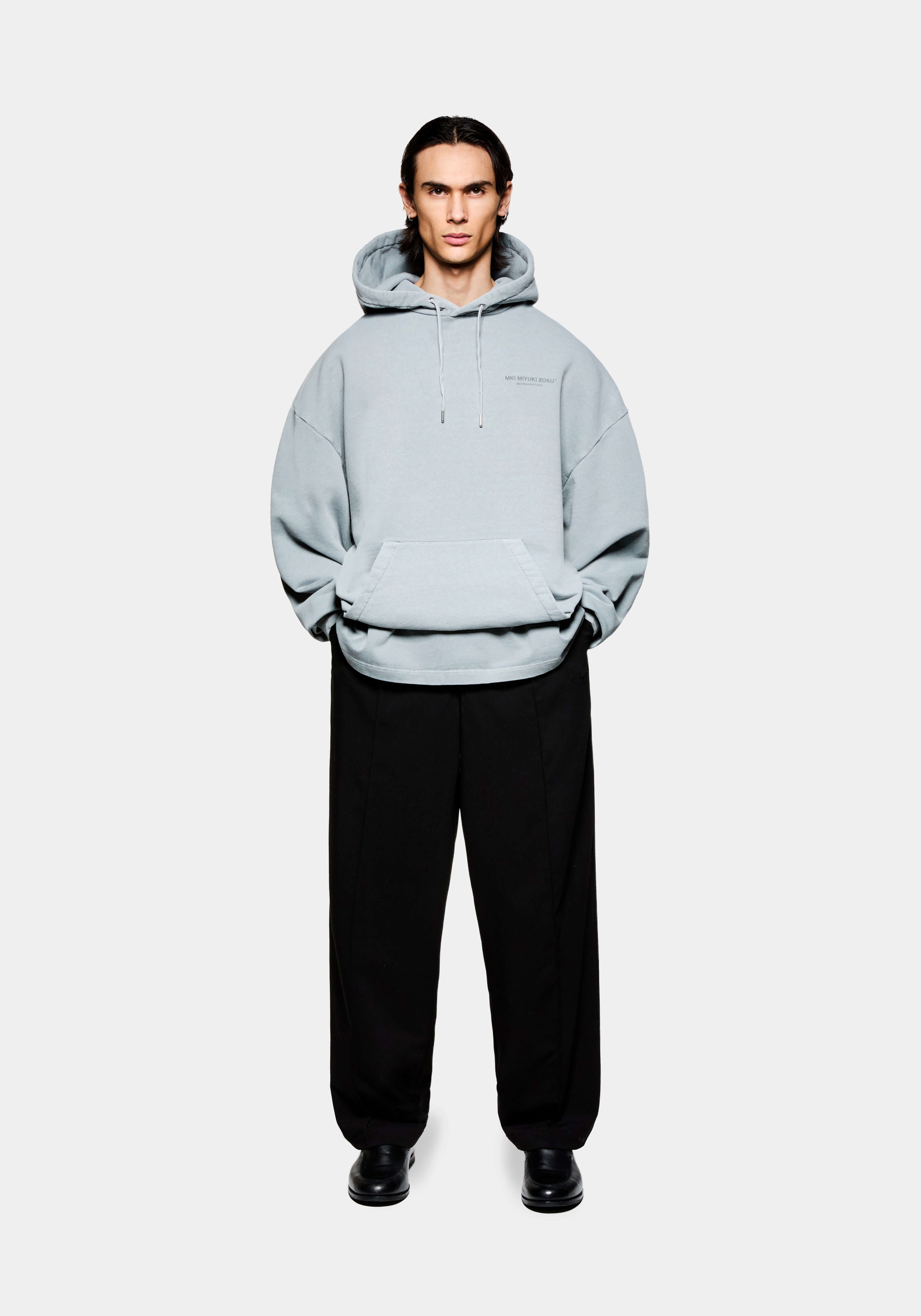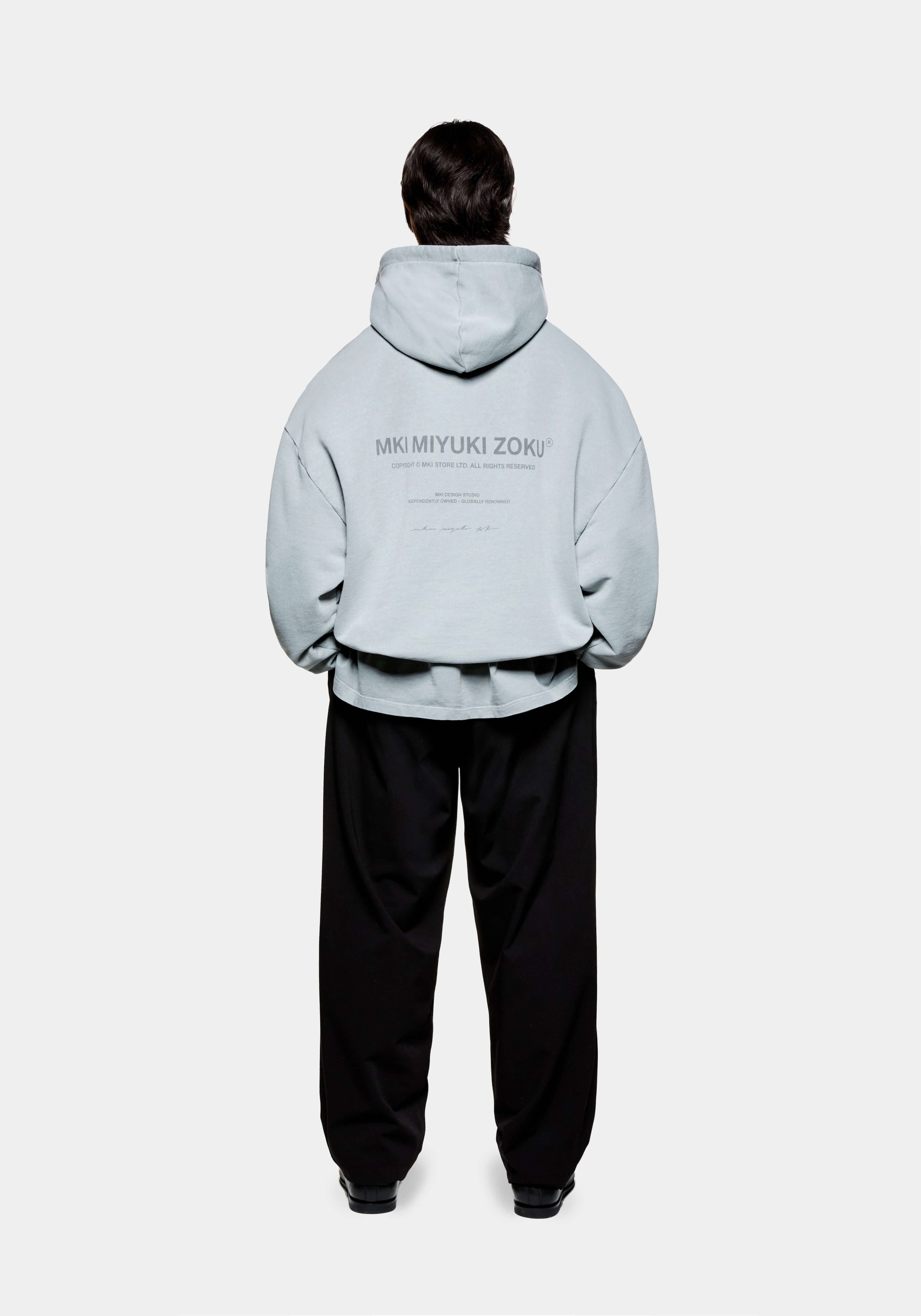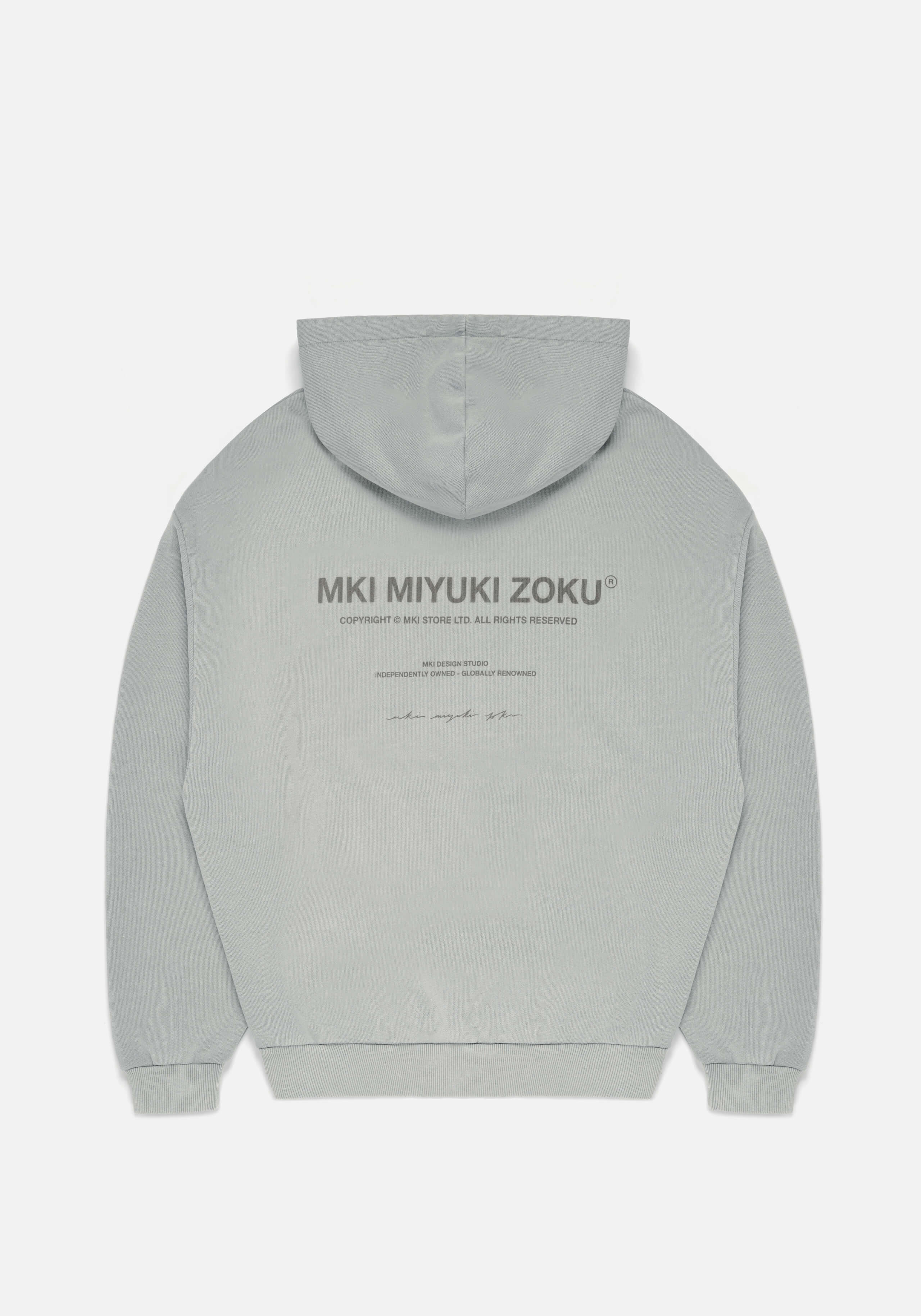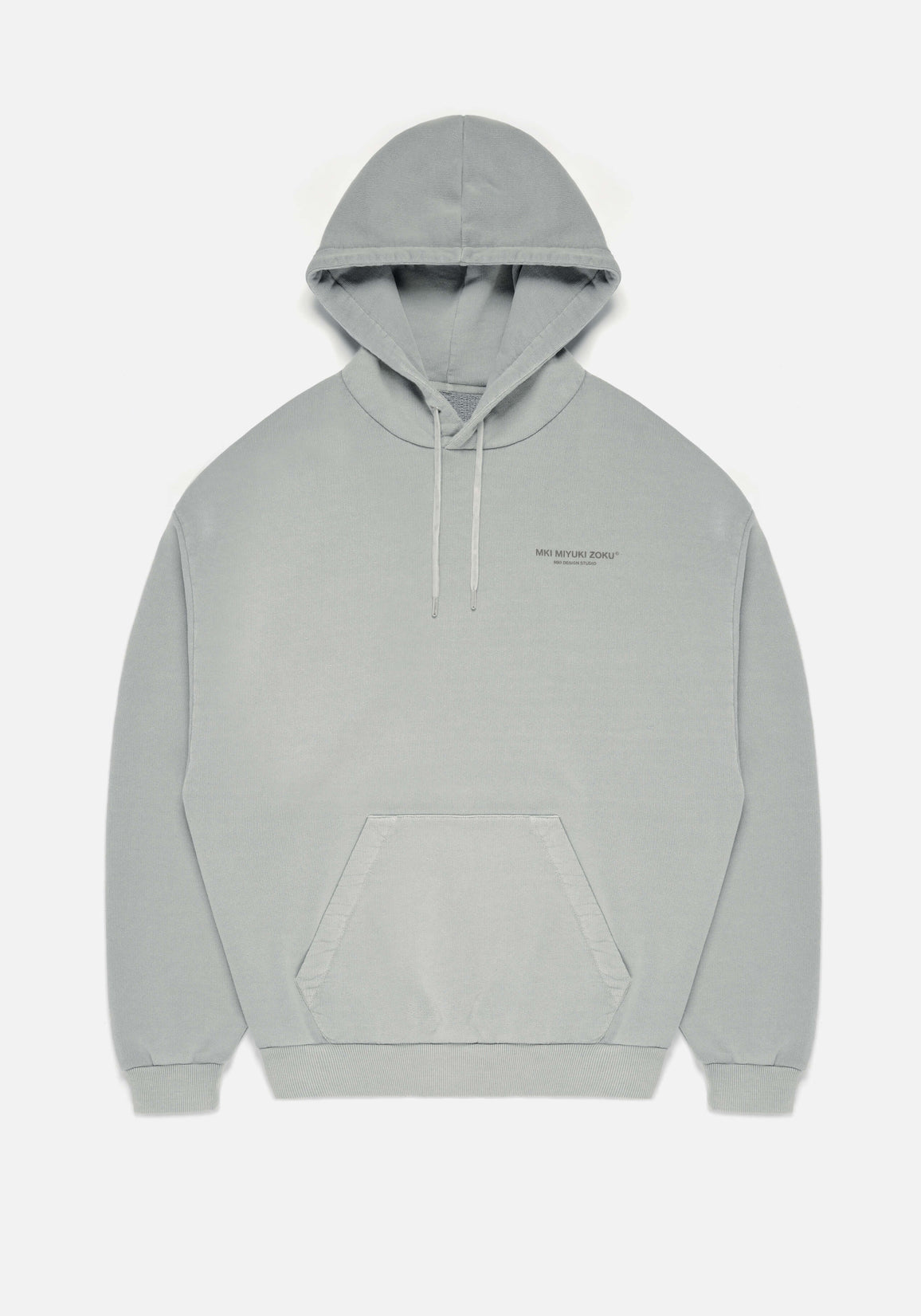 MKI DESIGN STUDIO HOODY IN PIGMENT GLACIER. THE MKI DESIGN STUDIO HOODY IS AVAILABLE IN AN OVERSIZED BOX FIT, CRAFTED FROM HEAVYWEIGHT 500GSM COTTON JERSEY. A STANDOUT IN THE DESIGN STUDIO COLLECTION, THE ICONIC PRINT FEATURES TONALLY, ADDING DEPTH TO THE COOL SHADE OF PIGMENT GLACIER. ESSENTIAL DETAILS INCLUDE A FRONT POUCH POCKET AND DOUBLE-LAYER HOOD, COMPLETE WITH TONAL, METAL-TIPPED DRAWSTRINGS.