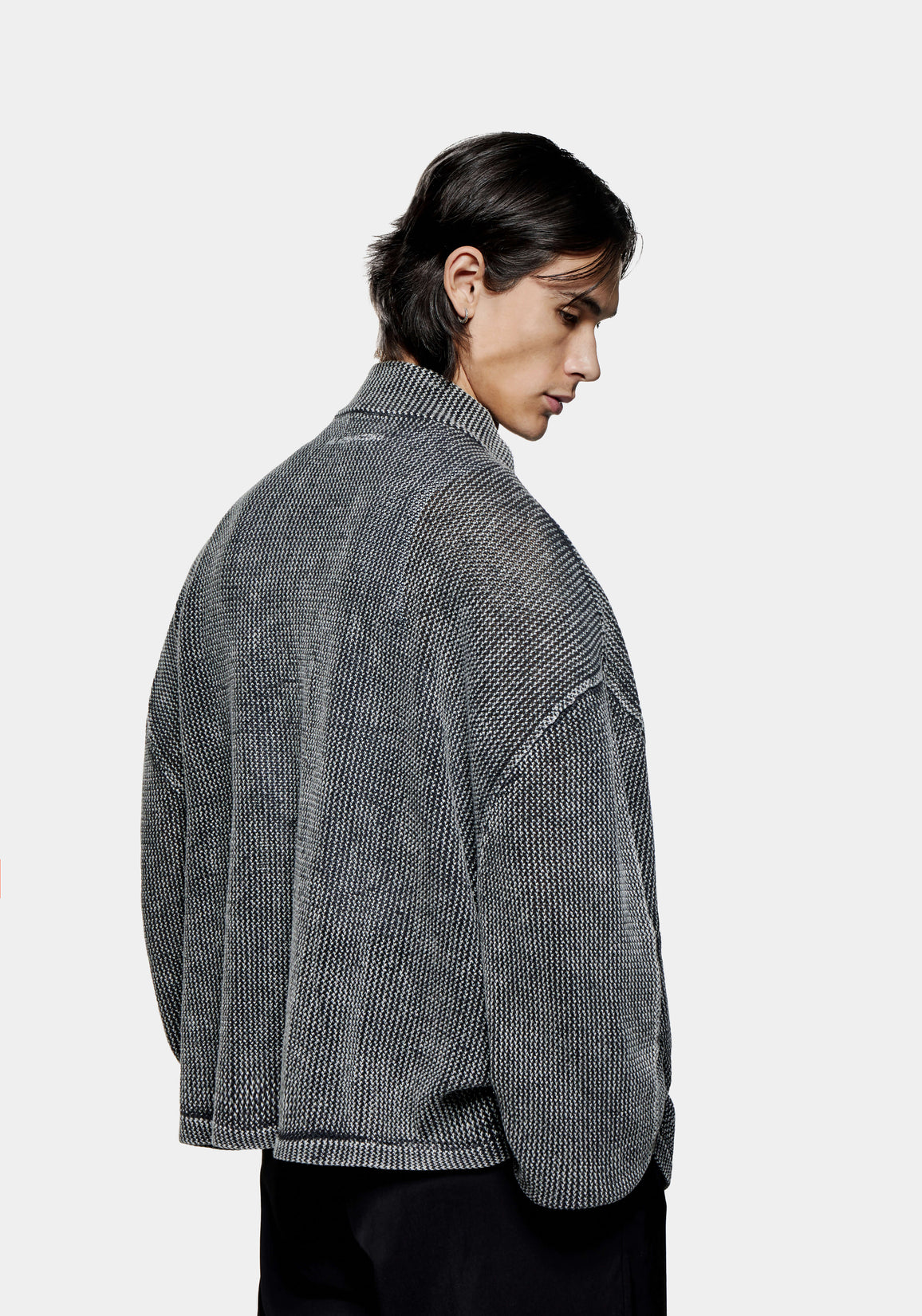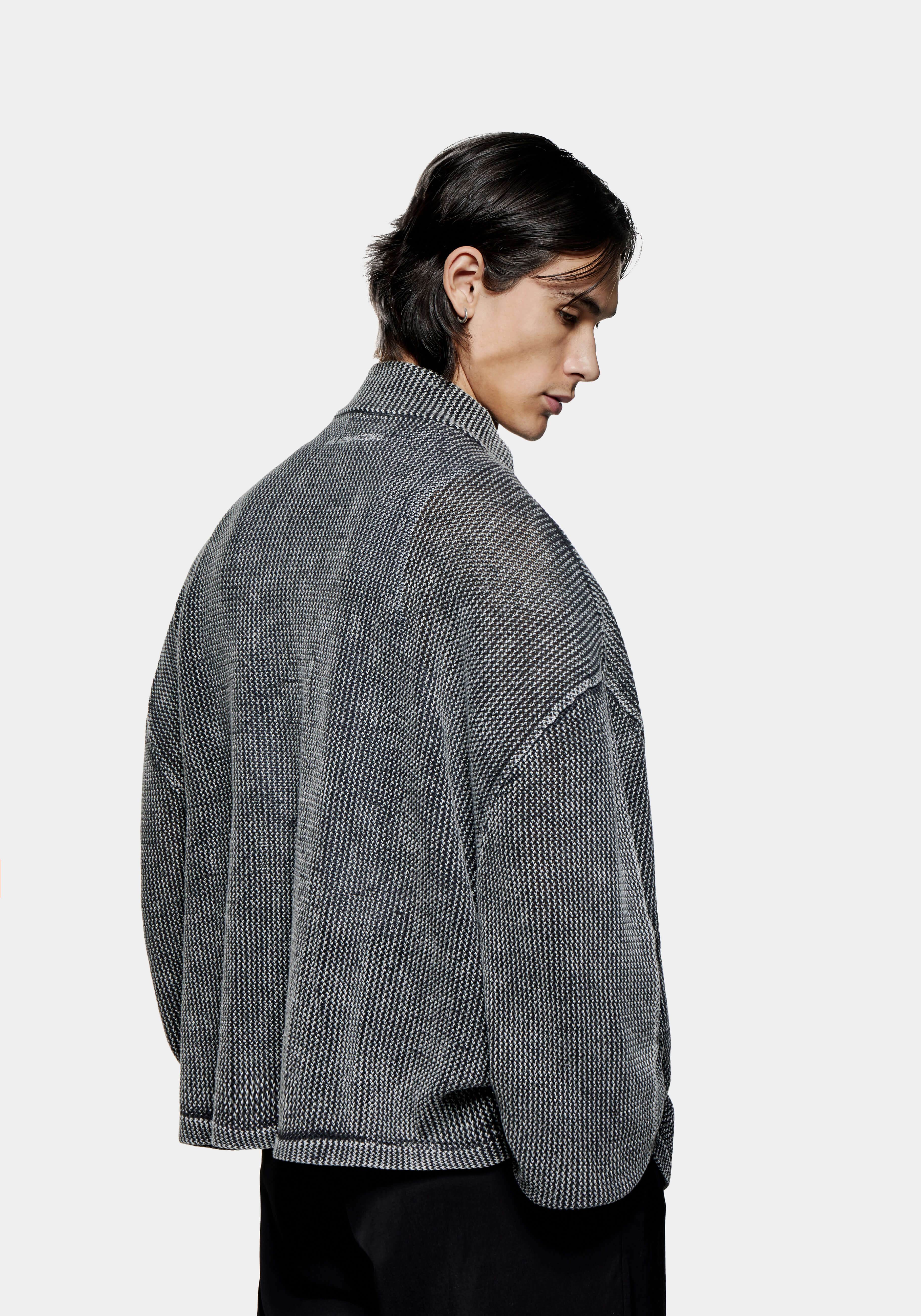 MKI PIGMENT LOOSE GAUGE TRACK JACKET IN PIGMENT BLACK. THE TRACK JACKET FROM THE PIGMENT LOOSE GAUGE COLLECTION OFFERS A VINTAGE LOOK WITH UNEVEN TEXTURE, FEATURING WASHED EXPOSED AREAS THAT ACCENTUATE THE RIBBING AND CUFFS FOR A NATURAL FINISH. WITH A RELAXED, CONTEMPORARY FIT AND LOOSELY WOVEN FABRIC, IT'S BREATHABLE AND LIGHTWEIGHT, MAKING IT IDEAL FOR WARMER WEATHER.