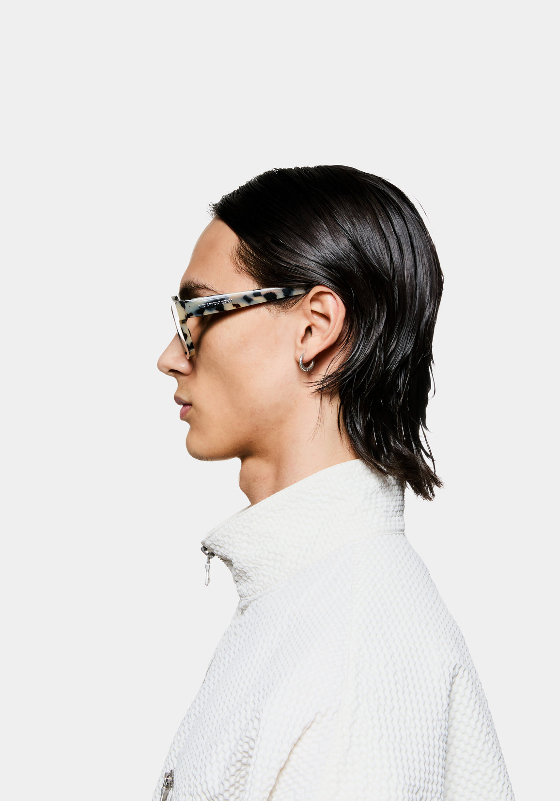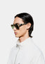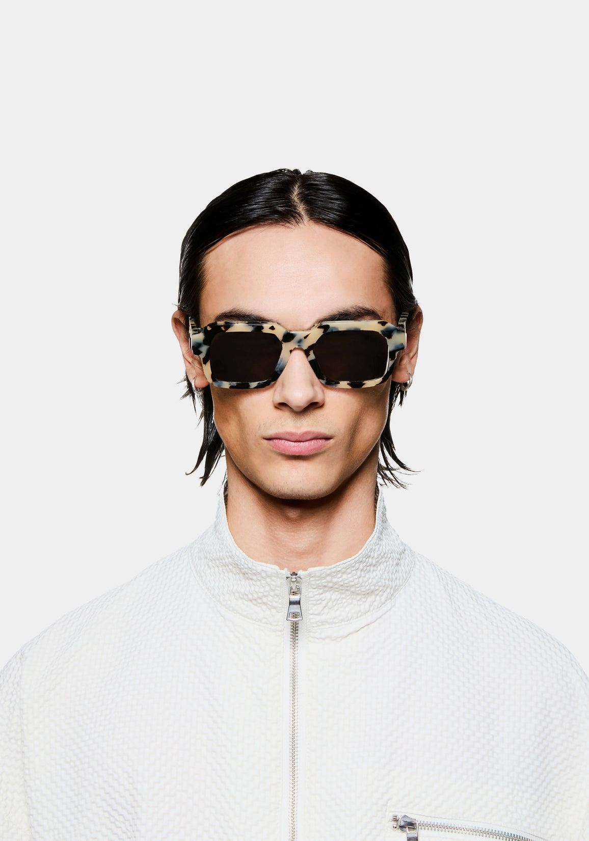 MKI SQUARE SUNGLASSES IN TORTOISE WITH GREEN LENSES.