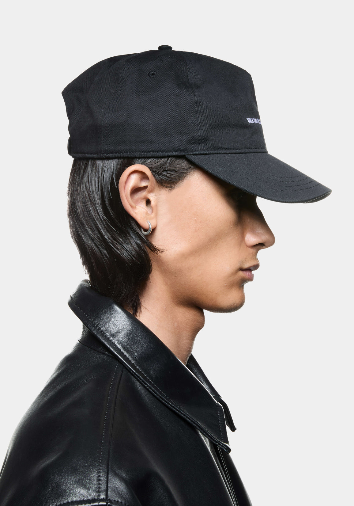 MKI V2 TWILL BALL CAP IN BLACK. A PROMINENT FEATURE IN MKI’S SEASONAL COLLECTIONS, THE V2 TWILL BALL CAP IN BLACK IS A CALCULATED INTERPRETATION OF THE 5-PANEL CAP, PERFECTLY FORMED WITH A RIGID CURVED PEAK THAT LENDS ITSELF TO THE COTTON TWILL CONSTRUCTION THAT WILL SOFTEN WITH TIME TO SUIT THE WEARER’S HEAD. CLASSIC MKI EMBROIDERY LIES AT THE FRONT WHILE A TONAL SNAPBACK ADJUSTER ROUNDS OUT THE DESIGN.