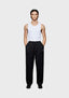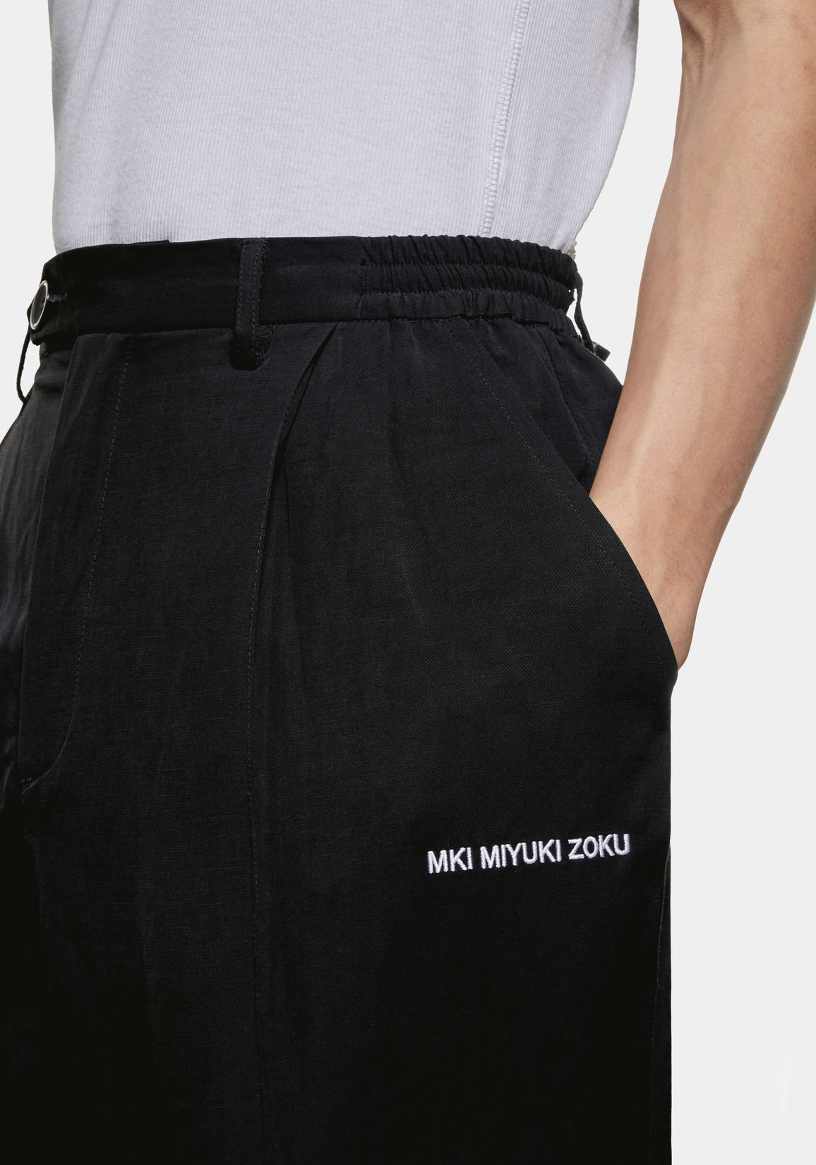 THE MODEL IS 6FT WITH A 38" CHEST AND 31" WAIST AND HAS BEEN STYLED IN A MEDIUM. WE RECOMMEND PURCHASING YOUR REGULAR SIZE, FOR THE DESIRED WIDE RELAXED FIT. THE MODEL IS ALSO WEARING MKI VEST BUT CAN BE PAIRED WITH THE MKI VISCOSE LINEN TRACK JACKET.