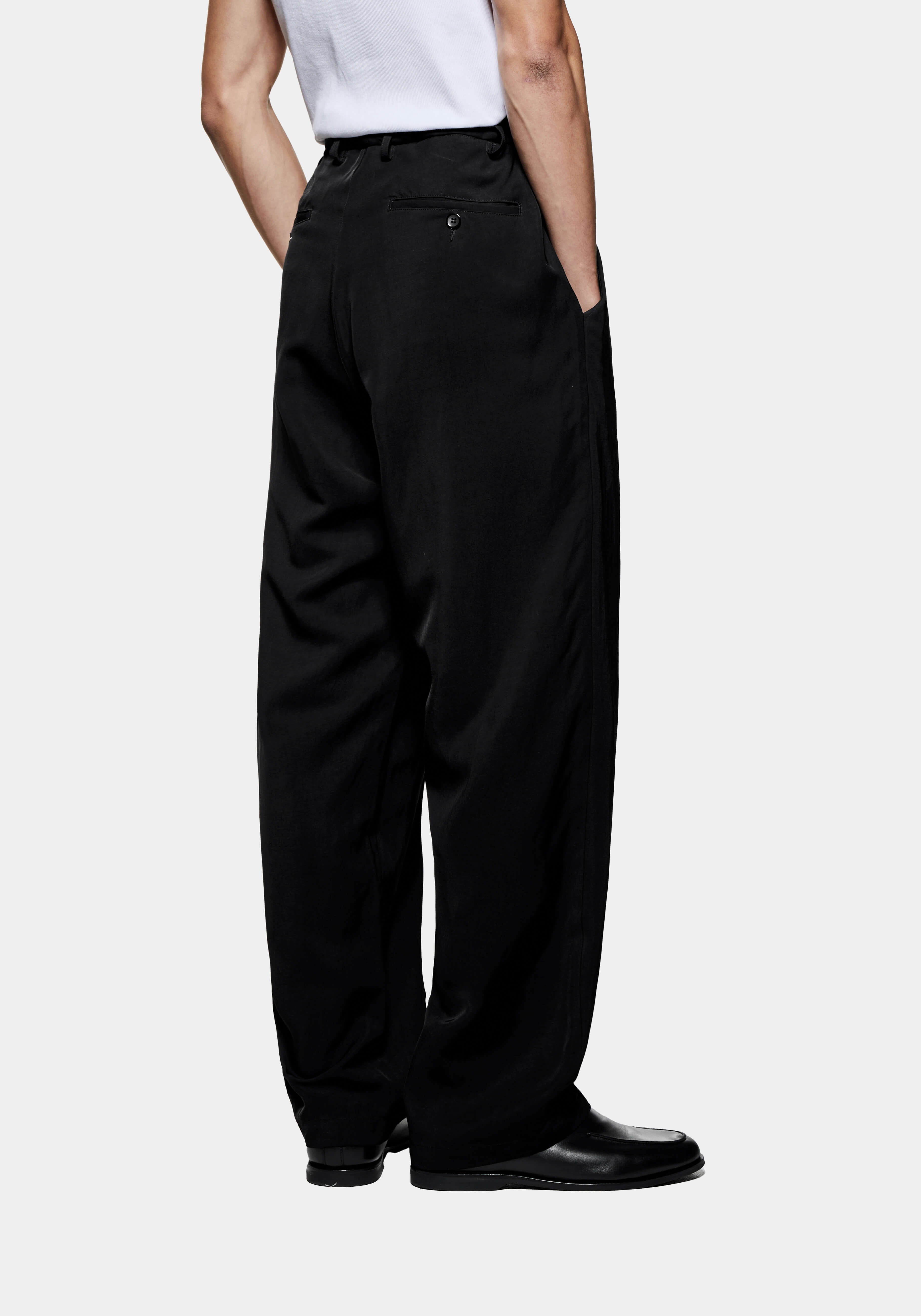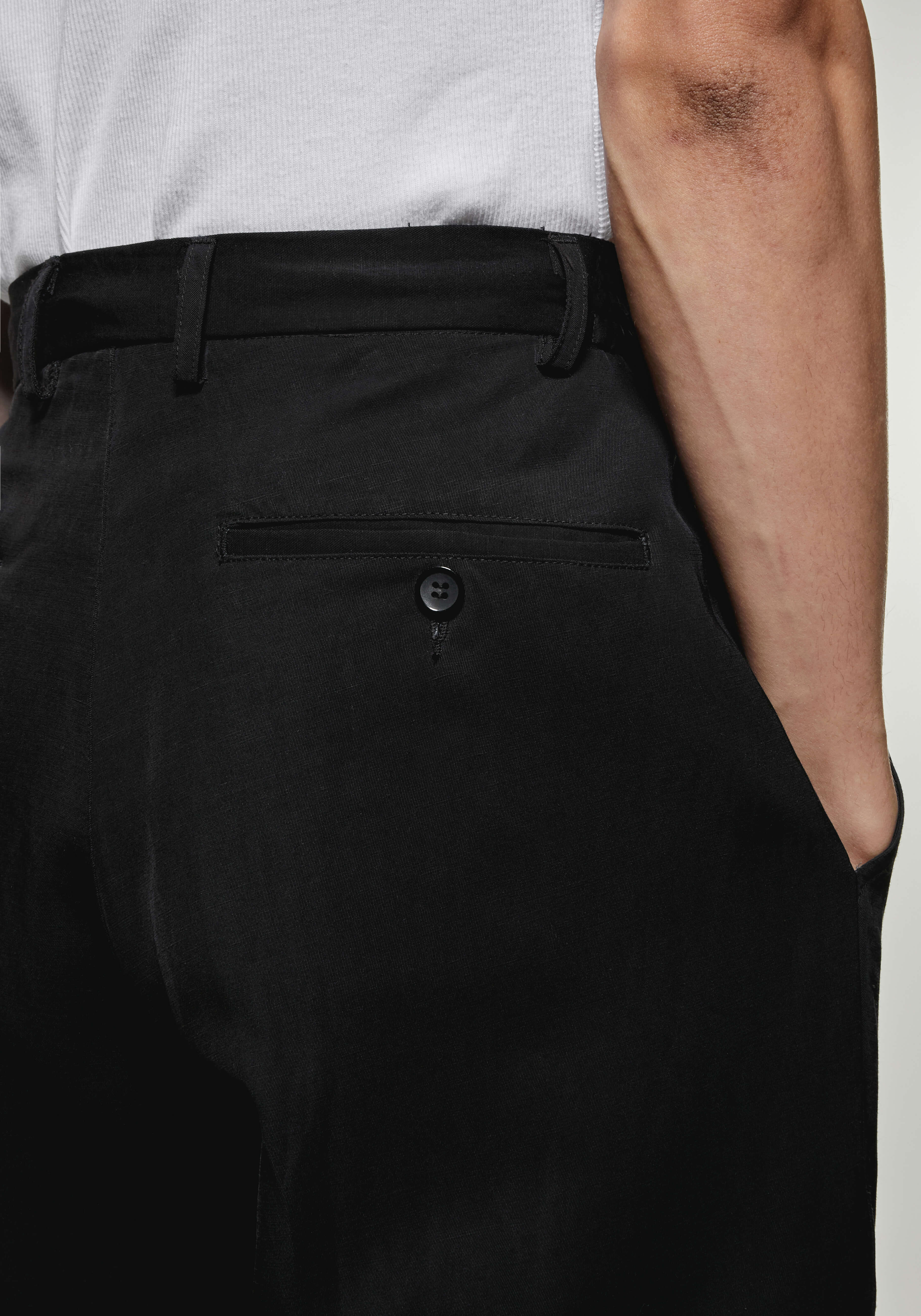 MKI VISCOSE LINEN WIDE FIT SUIT PANTS. THE VISCOSE LINEN BLEND COMBINES THE SMOOTH FEEL OF VISCOSE WITH THE NATURAL TEXTURE AND BREATHABILITY OF LINEN, OFFERING A BALANCE OF MODERN, CLEAN LINES AND PERFECT COMFORT. WHEN PAIRED WITH THE VISCOSE LINEN TRACK JACKET, IT BECOMES ELEVATED INTO A STAPLE EVENING PIECE.