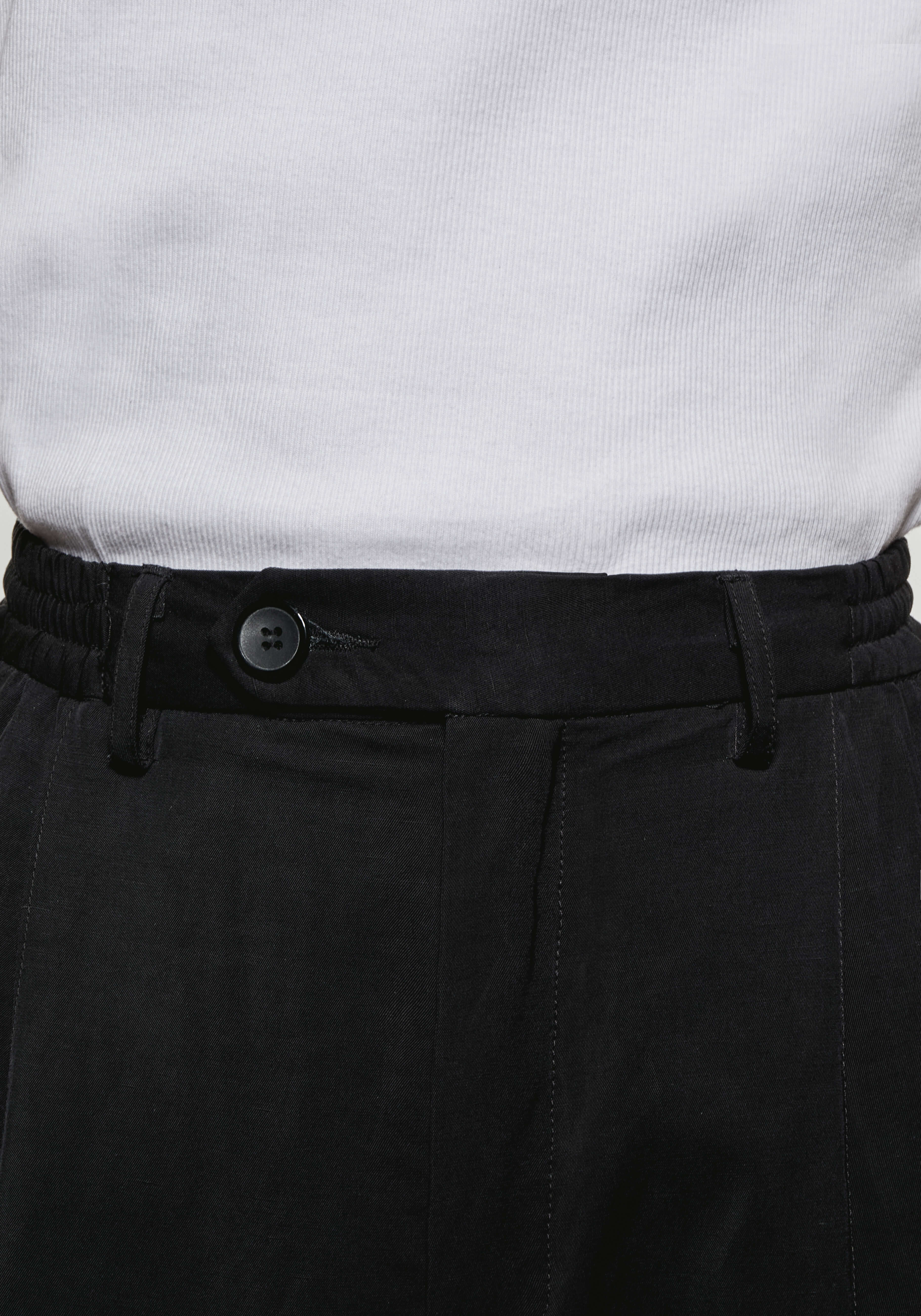 - SEMI ELASTIC WAISTBAND WITH BUTTON FLAP CLOSURE