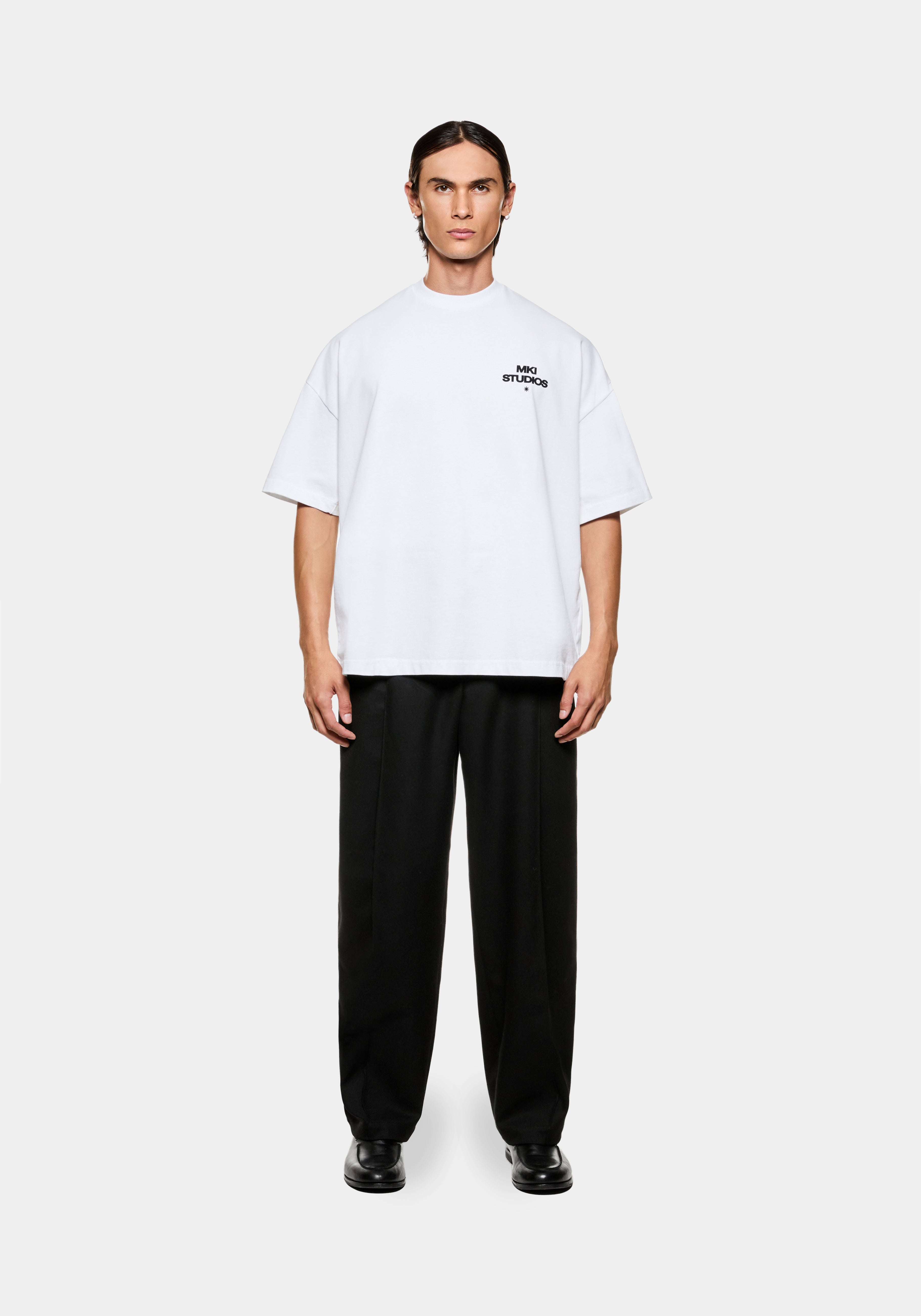 THIS PRODUCT FEATURES MKI’S OVERSIZED SILHOUETTE, CRAFTED FROM A 300 GSM HEAVYWEIGHT JERSEY BASE. DESIGNED TO ACHIEVE THE IDEAL OVERSIZED LOOK, WE RECOMMEND SIZING DOWN IF YOU PREFER A MORE REGULAR, BOXY FIT.