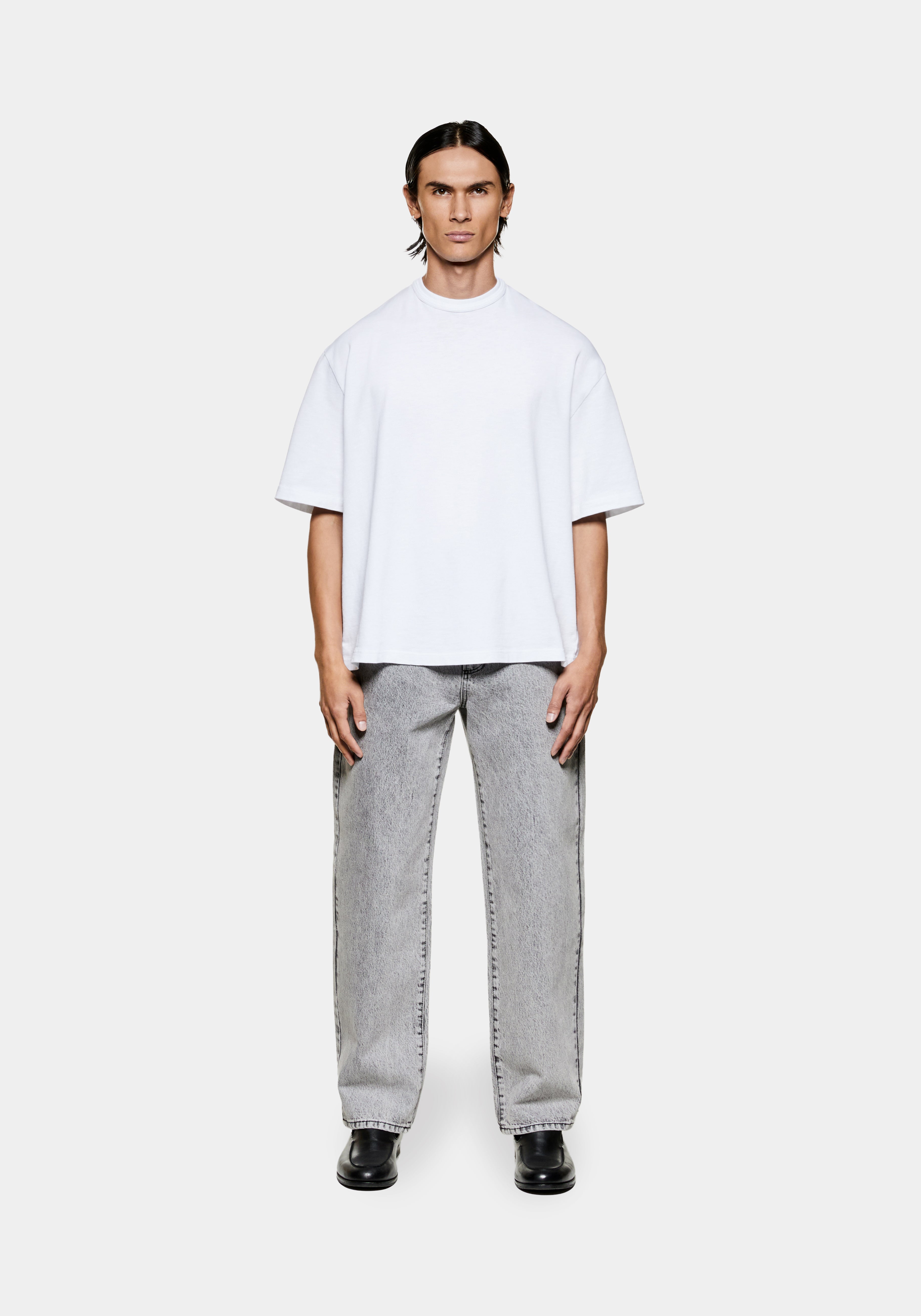 MKI 220 GSM SLUB T-SHIRT IN WHITE. THE NEW MKI 220 GSM SLUB JERSEY COLLECTION IS CRAFTED FROM LIGHTWEIGHT COTTON WITH A SUBTLE SLUB TEXTURE. THE RELAXED BOX FIT FEATURES DROPPED SHOULDERS, A CLOSE-FITTING NECKLINE, AND IS FINISHED WITH TONAL EMBROIDERY AT THE BACK OF THE NECK.