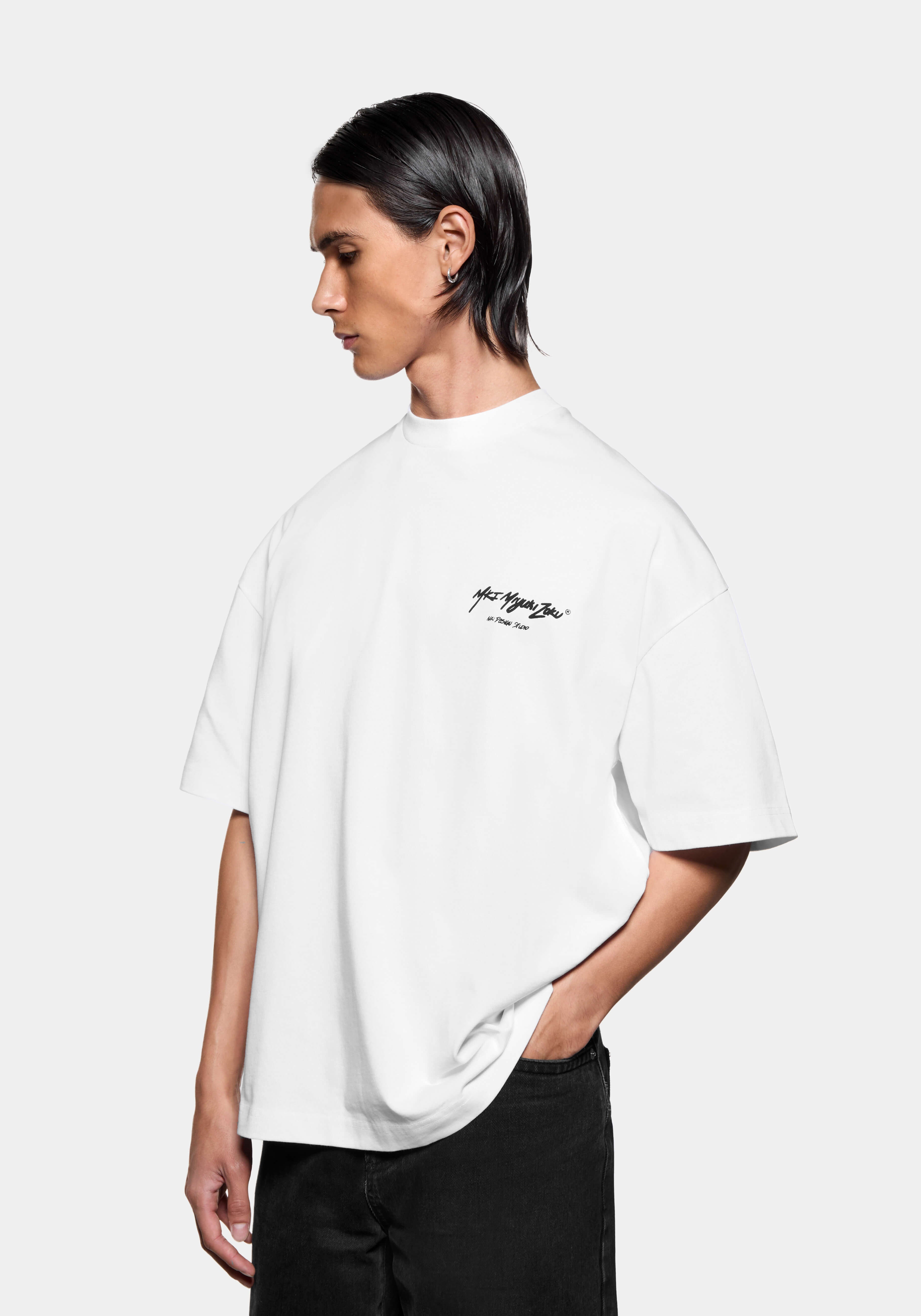 THIS PRODUCT FEATURES MKI’S OVERSIZED SILHOUETTE, CRAFTED FROM A 300 GSM HEAVYWEIGHT JERSEY BASE. DESIGNED TO ACHIEVE THE IDEAL OVERSIZED LOOK, WE RECOMMEND SIZING DOWN IF YOU PREFER A MORE REGULAR, BOXY FIT.