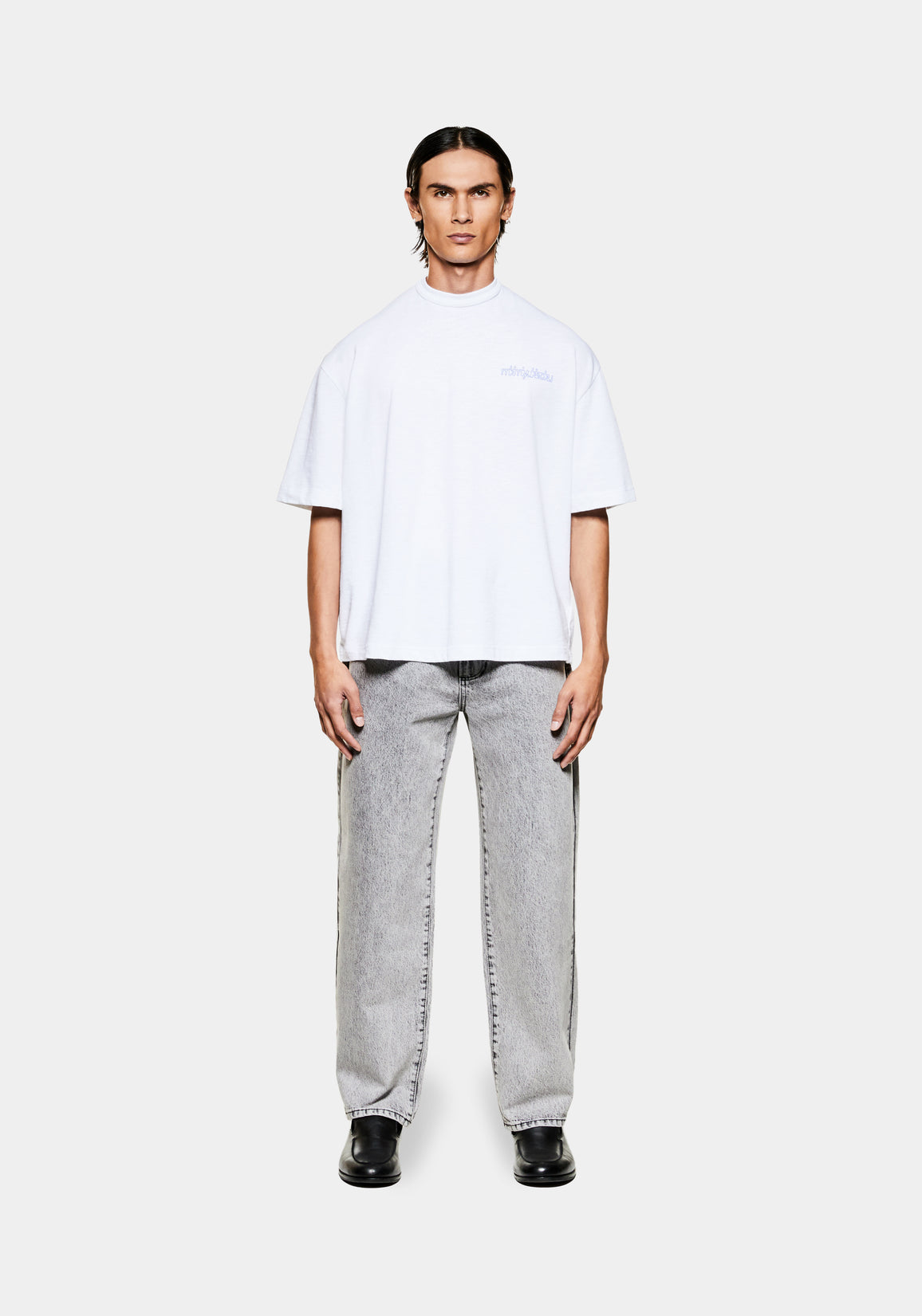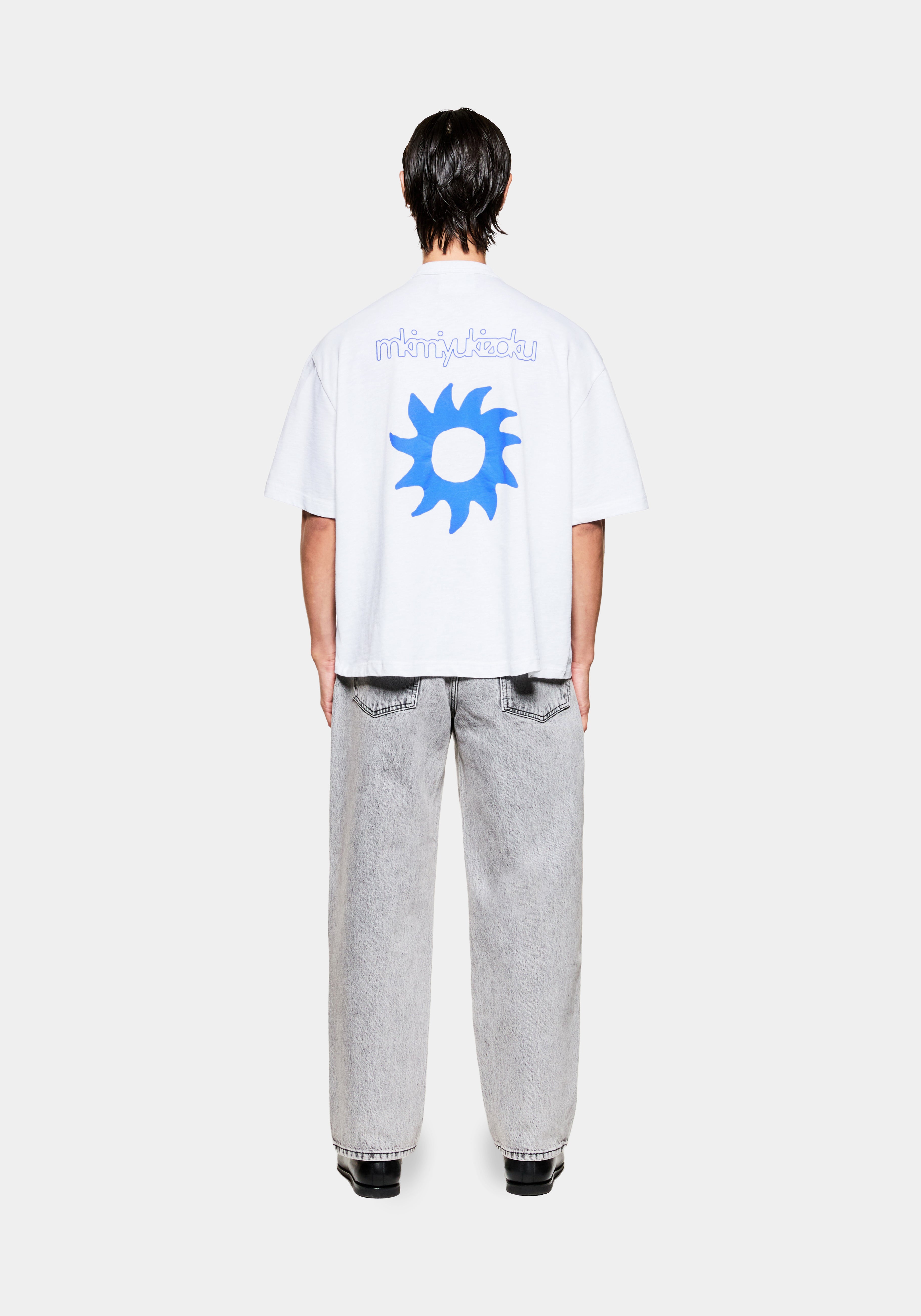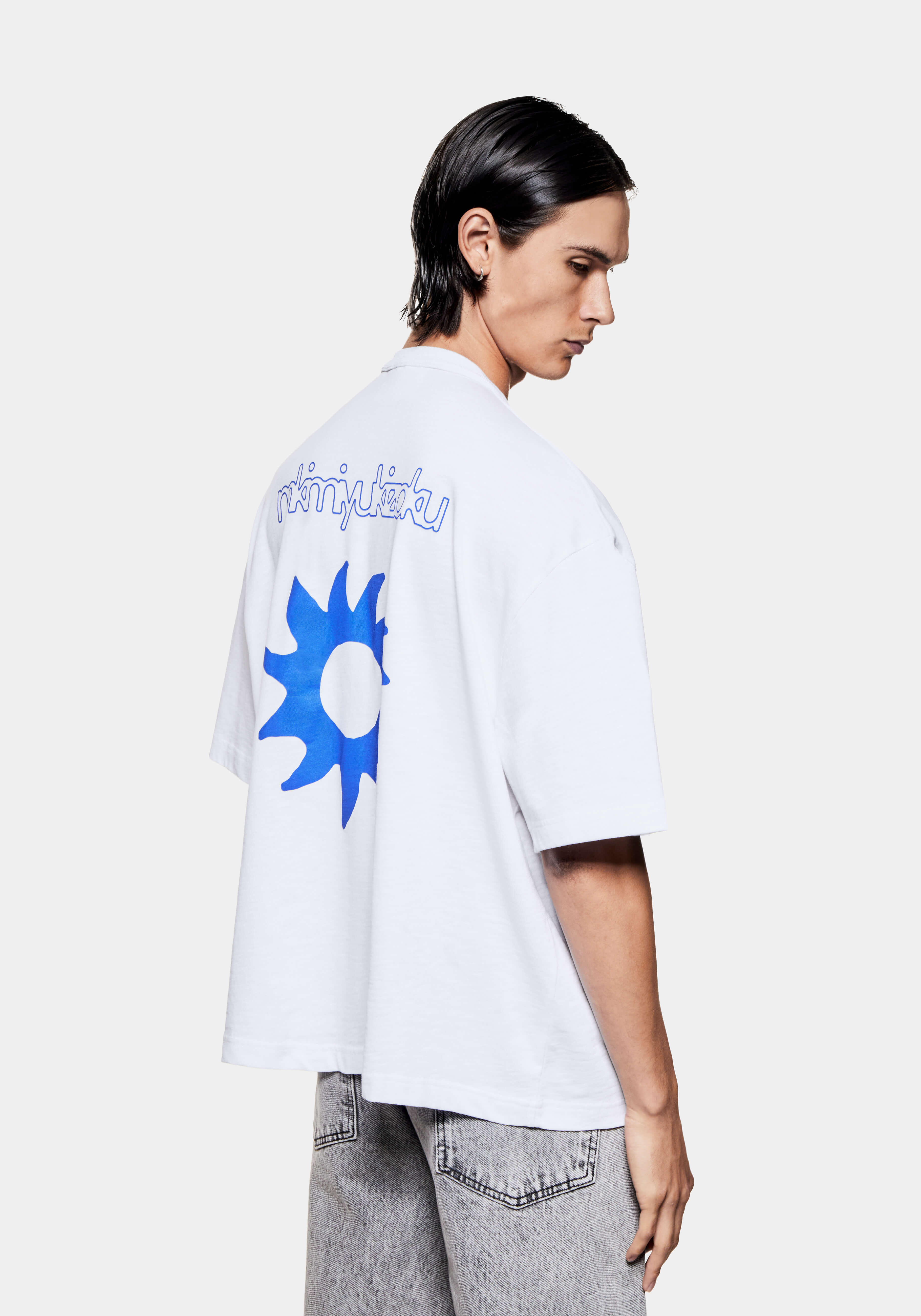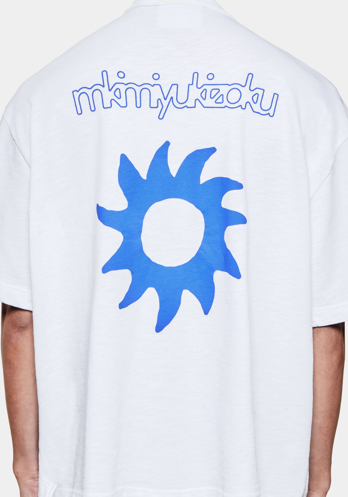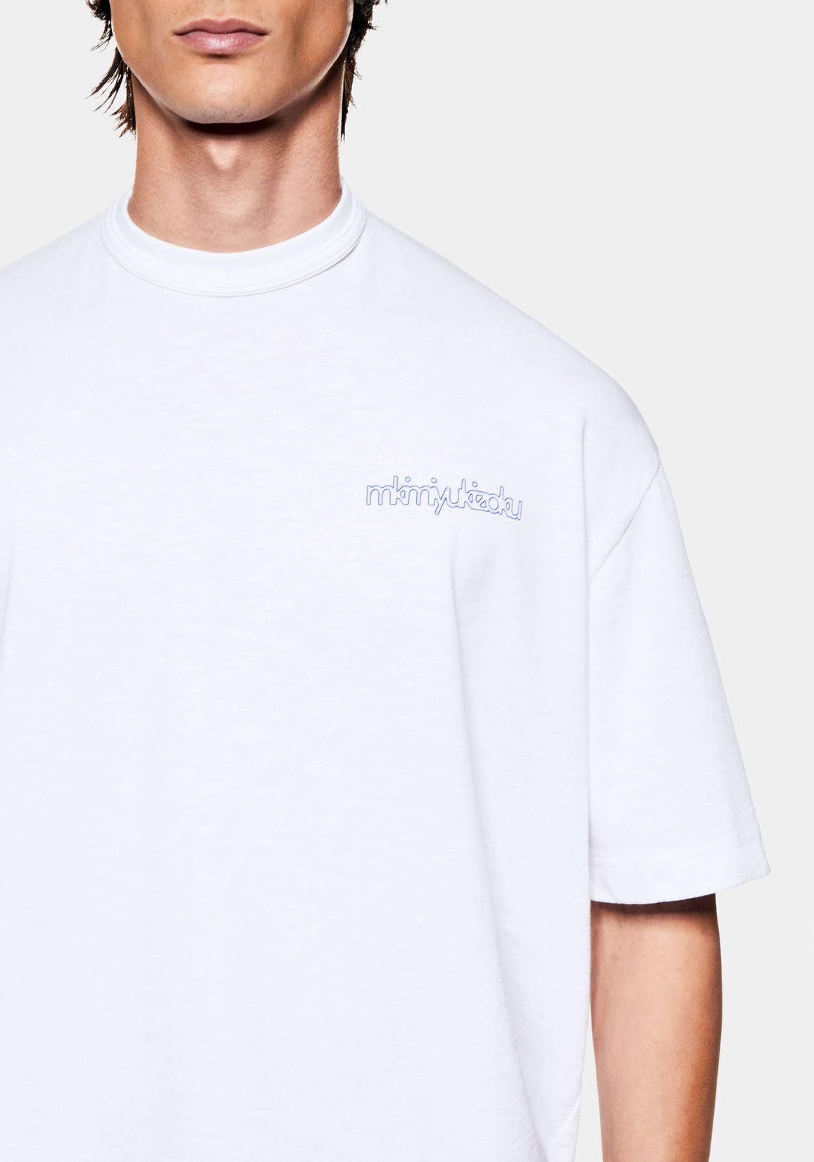 MKI SUN 220 GSM SLUB T-SHIRT IN WHITE. THIS LIMITED EDITION T-SHIRT COMBINES RELAXED STRUCTURE WITH EVERYDAY WEARABILITY. MADE FROM 100% COTTON SLUB JERSEY, IT FEATURES A RELAXED BOX FIT WITH DROPPED SHOULDERS AND A CLOSE-FITTING NECKLINE FOR A CLEAN, REFINED LOOK.