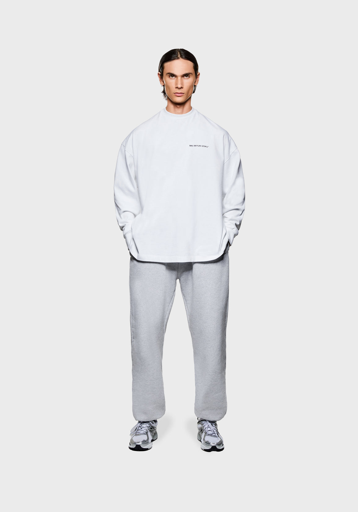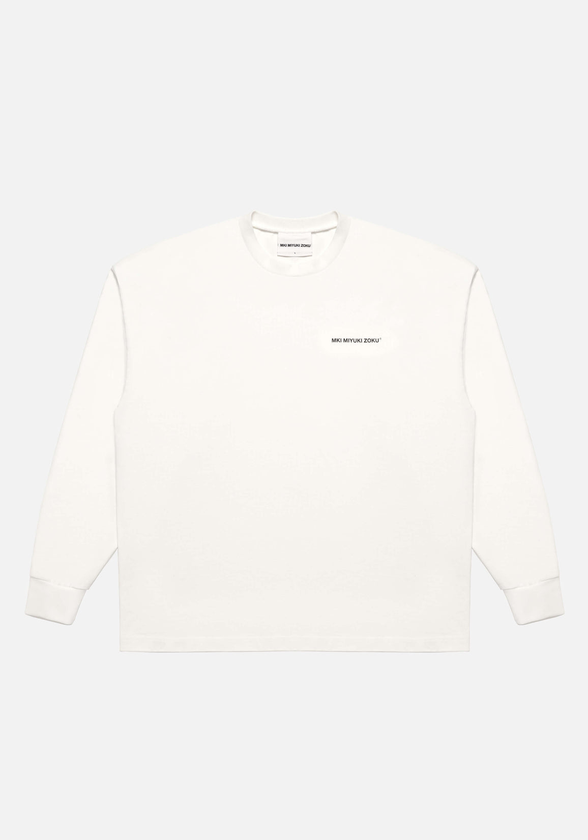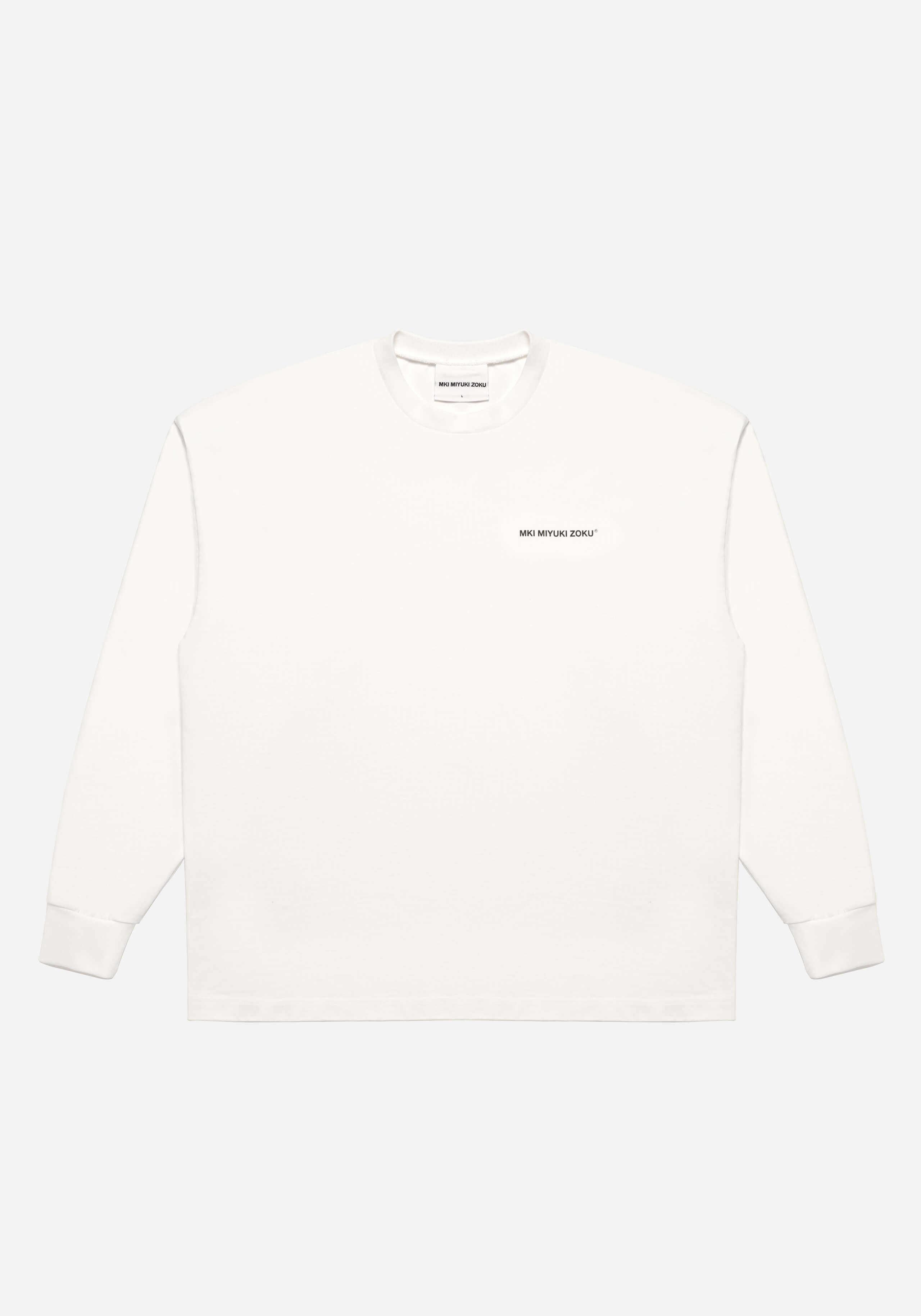 MKI UNIFORM LONGSLEEVE T-SHIRT IN WHITE. DESIGNED WITH THE PERFECT OVERSIZED BOX FIT, THE MKI UNIFORM LONGSLEEVE T-SHIRT FEATURES A DROPPED-SHOULDER BUILD WITH A CLOSE-FITTING NECKLINE. THE HEAVYWEIGHT T-SHIRT IS CRAFTED FROM 300GSM COTTON JERSEY, FINISHED WITH MKI’S UNIFORM GRAPHIC, SCREEN-PRINTED AT THE LEFT CHEST.