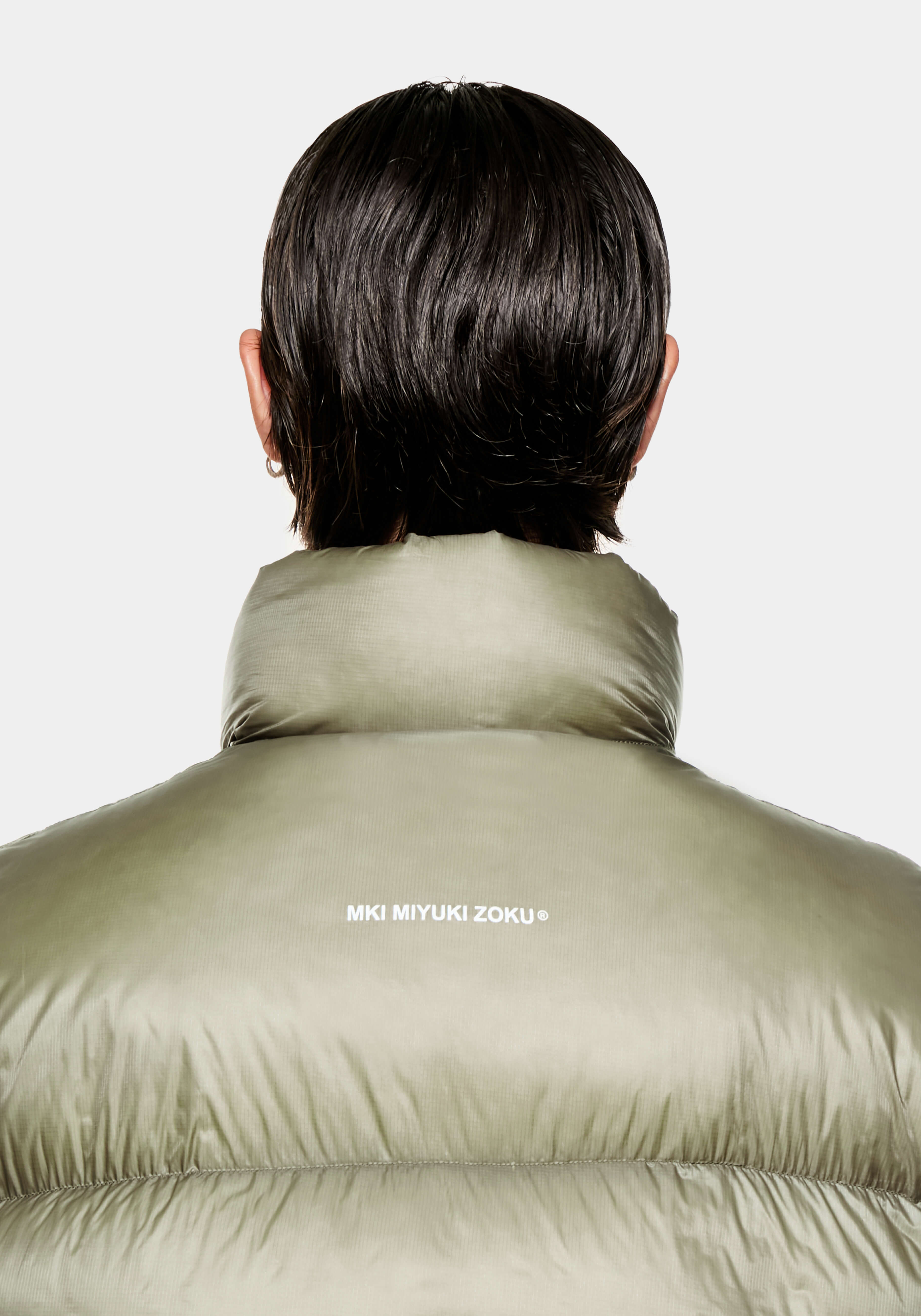 MKI TRANSLUCENT FUNNEL NECK BUBBLE JACKET IN SAGE. PRESENTED IN A RICH SHADE OF SAGE, THE BESTSELLING MKI TRANSLUCENT BUBBLE COLLECTION RETURNS FOR FW25. DESIGNED WITH COMFORT IN MIND, THE DESIGN IMPROVEMENTS COMPRISE AN INCREASED 650+ DOWN FILL AND STITCHED-THROUGH BAFFLES, CREATING A STRUCTURED, FULLER SILHOUETTE. THE UPGRADED OUTER SHELL BOTH PROVIDES ENHANCED WIND AND WATER RESISTANCE, WHILE NATURALLY HIGHLIGHTING THE TAPED SEAM DETAILING THROUGHOUT.