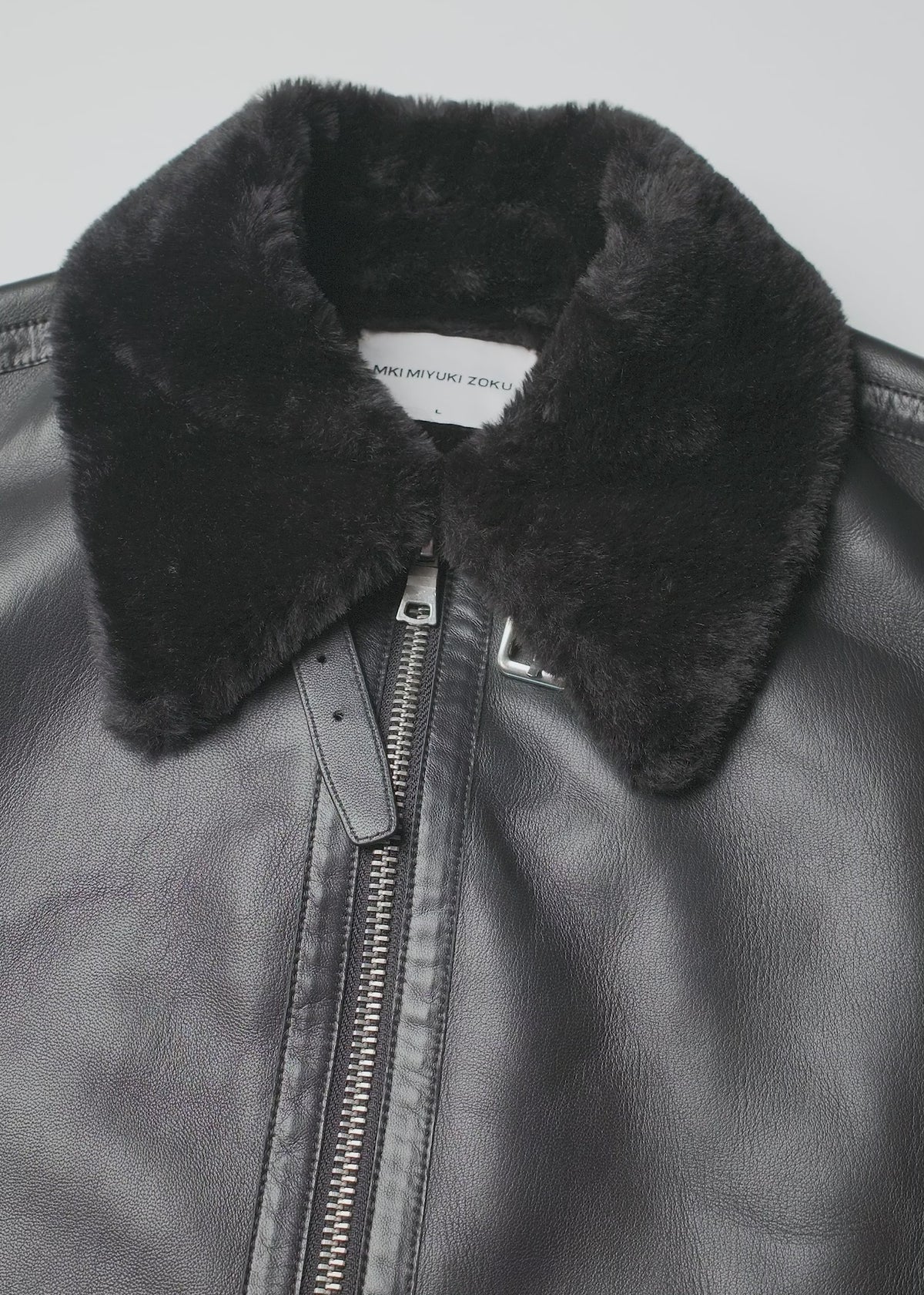 MKI V2 SHEARLING FLIGHT JACKET IN BUTTER-SOFT LEATHER WITH A SUBTLE GRAIN AND SLIGHT SHEEN. COMPLIMENTED WITH NAPPA TAPING AND TONAL EMBROIDERY, WITH A BONDED FAUX FUR LINING AND COLLAR. FINISHED WITH SIGNATURE COLLAR BUCKLE AND ICONIC PANELLING.
